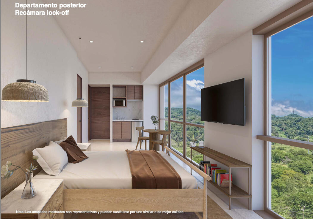 English below. Precioso condominio nuevo en esquina con grande terraza, y plano lockoff! �Alquile como 2 condominios independientes o disfrute como 1! 23 condominios, piscina infinita climatizada en la azotea, vistas, gimnasio, elevador. Bodegas y estacionamiento costo adicional ($). Ubicaci�n perfecto 1/2 cuadra a la playa, 2.5 cuadras del centro, o plaza Los Amores. A 20 minutos del aeropuerto. Pagos por 18 meses, listo Dec. 2025!Gorgeous new corner condo with large deck, and lockoff floor plan. Rent as 2 self contained condos or enjoy as 1! 23 condos, rooftop heated infinity pool with views, gym, fire pit, BBQ area, elevator. Storage + parking are extra $. Perfect location 1/2 block to beach, 2.5 blocks to downtown or Los Amores Plaza. Payments over 18 months, ready D
