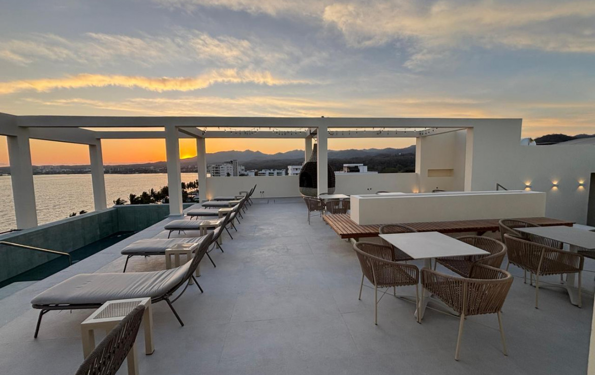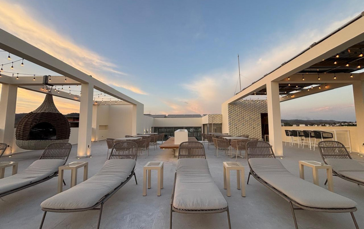 Precioso condominio nuevo en esquina, grande terraza, y plano lockoff! Alquile como 2 condominios independientes o disfrute como 1! Opcional jacuzzi. 22 condominios, piscina infinita climatizada en la azotea, vistas, gimnasio, elevador. Bodegas y estacionamiento costo adicional. Ubicacion perfecto 1/2 cuadra a la playa, 2.5 cuadras del centro, o plaza Los Amores. A 20 minutos del aeropuerto. Estimado entrega mar /26