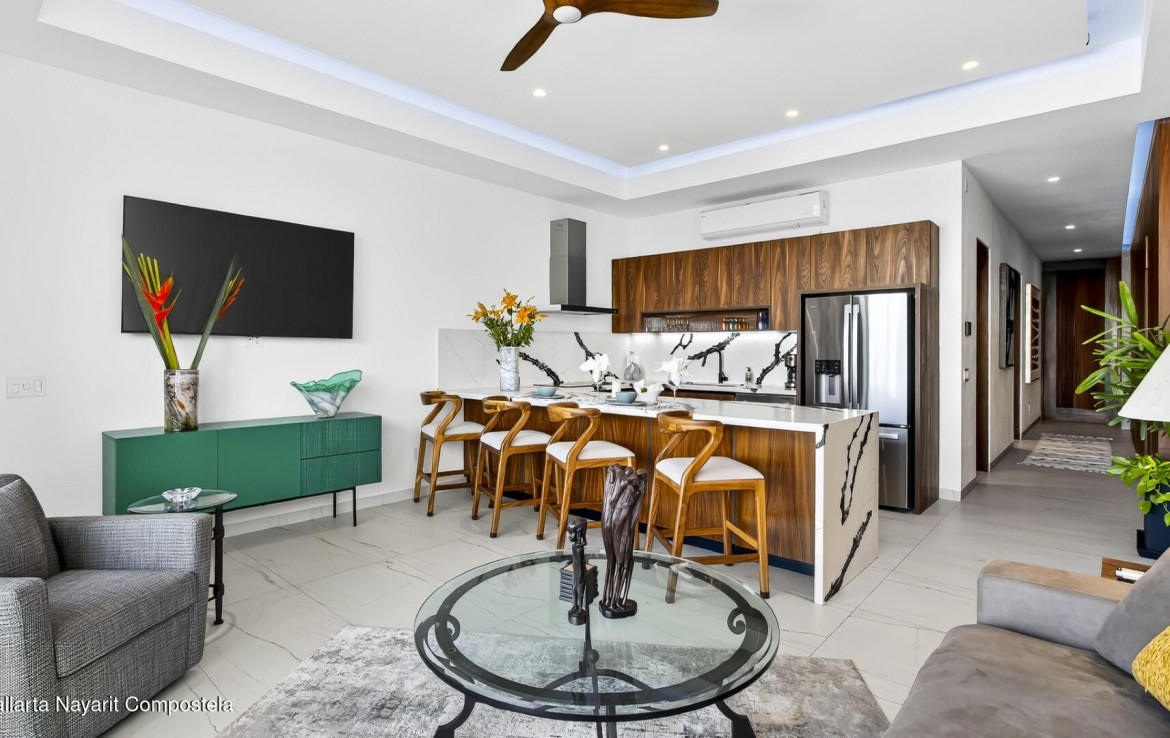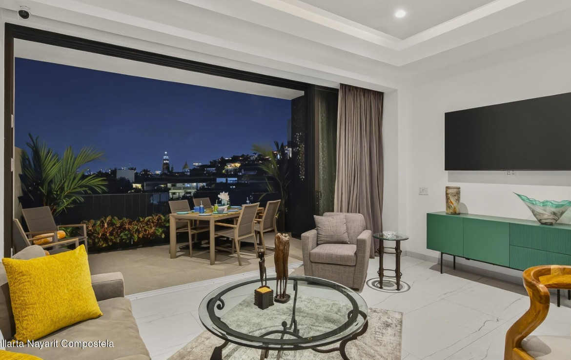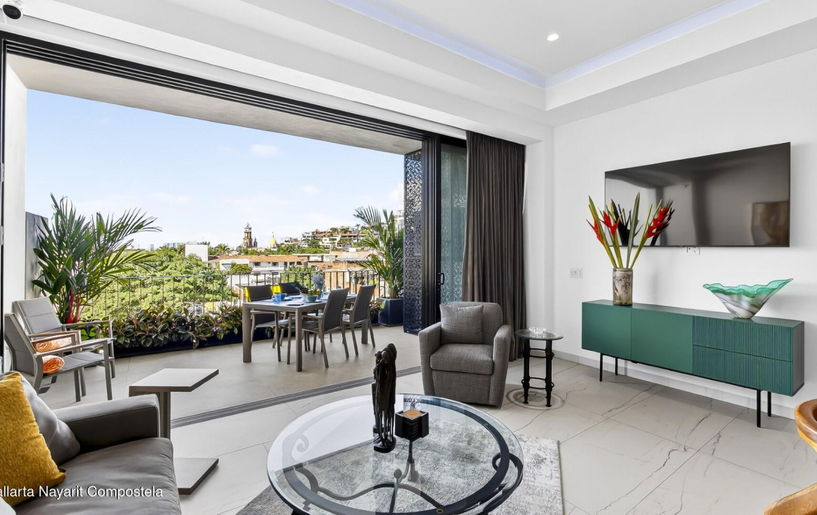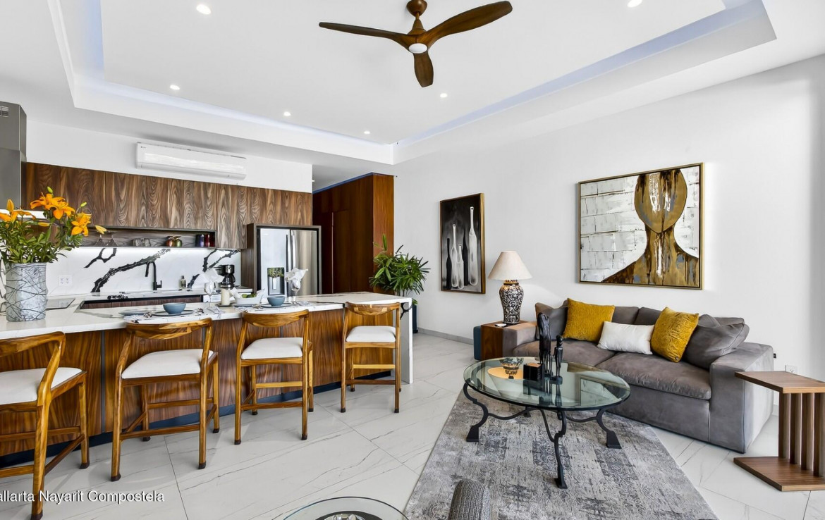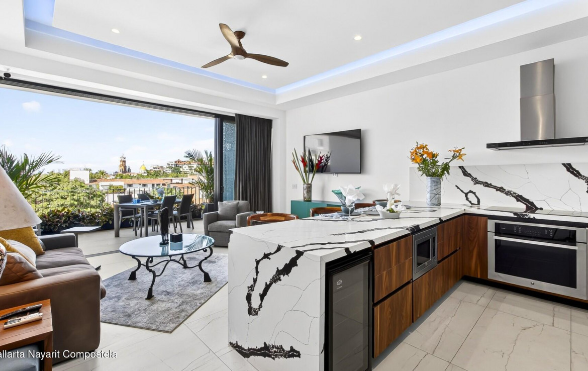 [English Below] El lujo y las mejoras exclusivas destacan en este condominio amueblado de 1 recamara y 2 banos en la Zona Romantica. Diseno curado, carpinteria de calidad, electrodomesticos premium, isla de granito tipo »waterfall» y barra personalizada elevan la cocina gourmet. Puertas de vidrio apilables amplian la sala hacia una terraza de gran tamano. Persianas automaticas, iluminacion LED seleccionable por color y acabados refinados ofrecen confort inmediato. La recamara incluye muebles empotrados a medida y bano ensuite, mas un segundo bano completo para invitados. Alberca infinita en rooftop, gimnasio, seguridad 24 h y ubicacion inmejorable completan esta oferta unica.