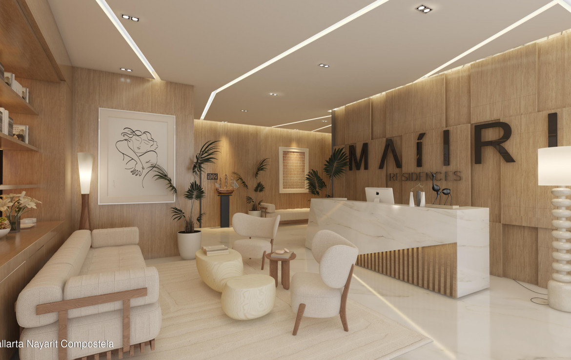 (english Below) Maiiri es un desarrollo boutique en preventa ubicado a solo una cuadra de la playa, en el corazon de Bucerias. Ofrece departamentos de 1 o 2 recamaras, en una torre exclusiva con acceso adaptado, lobby con conserje, gimnasio y rooftop con alberca y vista al mar. — Maiiri is a boutique pre-sale development just one block from the beach, in the heart of Bucerias. It offers 1- or 2-bedroom apartments in an exclusive tower with accessible design, concierge lobby, gym, and a rooftop pool with ocean view.