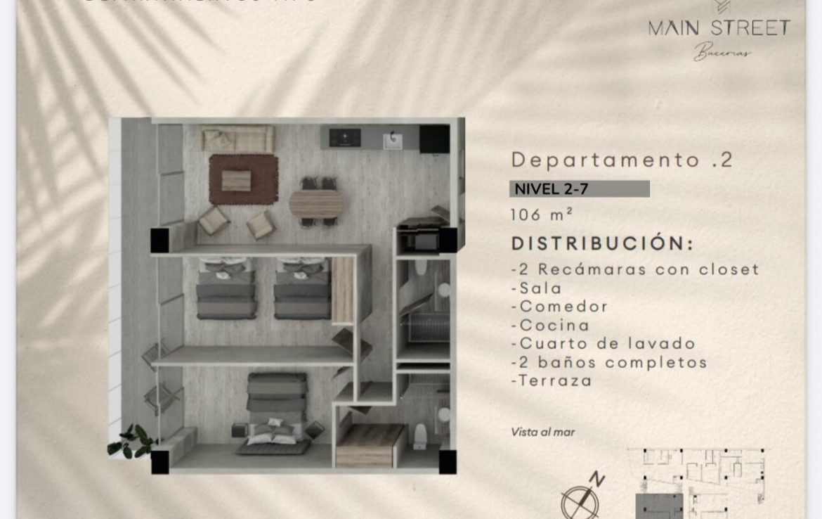 Discover MAIN STREET Bucerias, an exclusive new development located in the heart of Bucerias’ sought-after Golden Zone–just two blocks from the beach and steps to the vibrant downtown, with the best shops, cafes, and restaurants at your doorstep.This boutique project features 29 residences, including 2 stunning penthouses, each thoughtfully designed with natural tones and quality materials for a modern yet warm feel. A variety of floor plans are available, providing opportunities for both comfortable full-time living and high-yield rental income–with select units offering ocean views.Enjoy a welcoming lobby with concierge, ground-floor retail spaces, and rooftop amenities that include: Infinity pool & jacuzziExpansive sundeckBar & lounge area