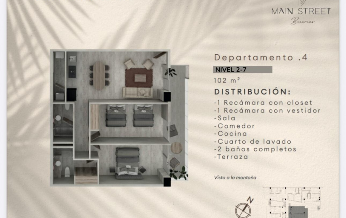 Discover MAIN STREET Bucerias, an exclusive new development located in the heart of Bucerias’ sought-after Golden Zone–just two blocks from the beach and steps to the vibrant downtown, with the best shops, cafes, and restaurants at your doorstep.This boutique project features 29 residences, including 2 stunning penthouses, each thoughtfully designed with natural tones and quality materials for a modern yet warm feel. A variety of floor plans are available, providing opportunities for both comfortable full-time living and high-yield rental income–with select units offering ocean views.Enjoy a welcoming lobby with concierge, ground-floor retail spaces, and rooftop amenities that include: Infinity pool & jacuzziExpansive sundeckBar & lounge area