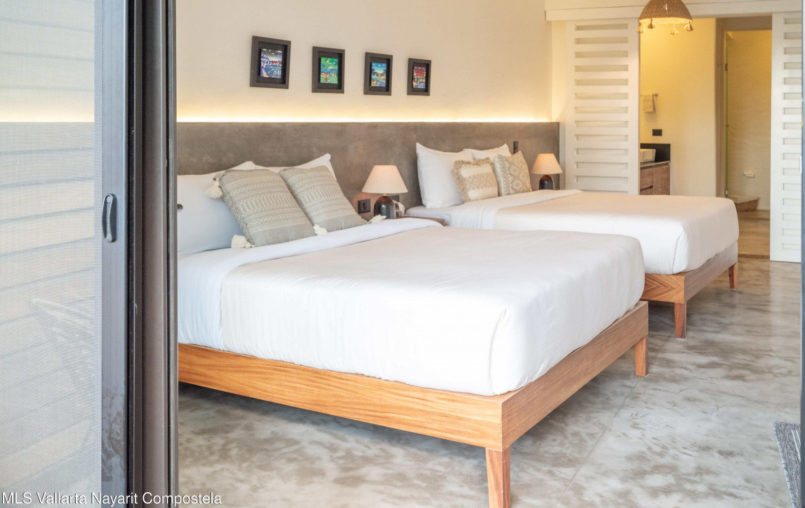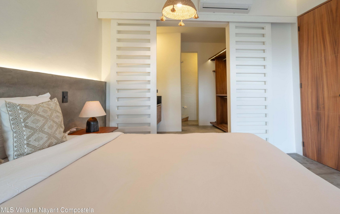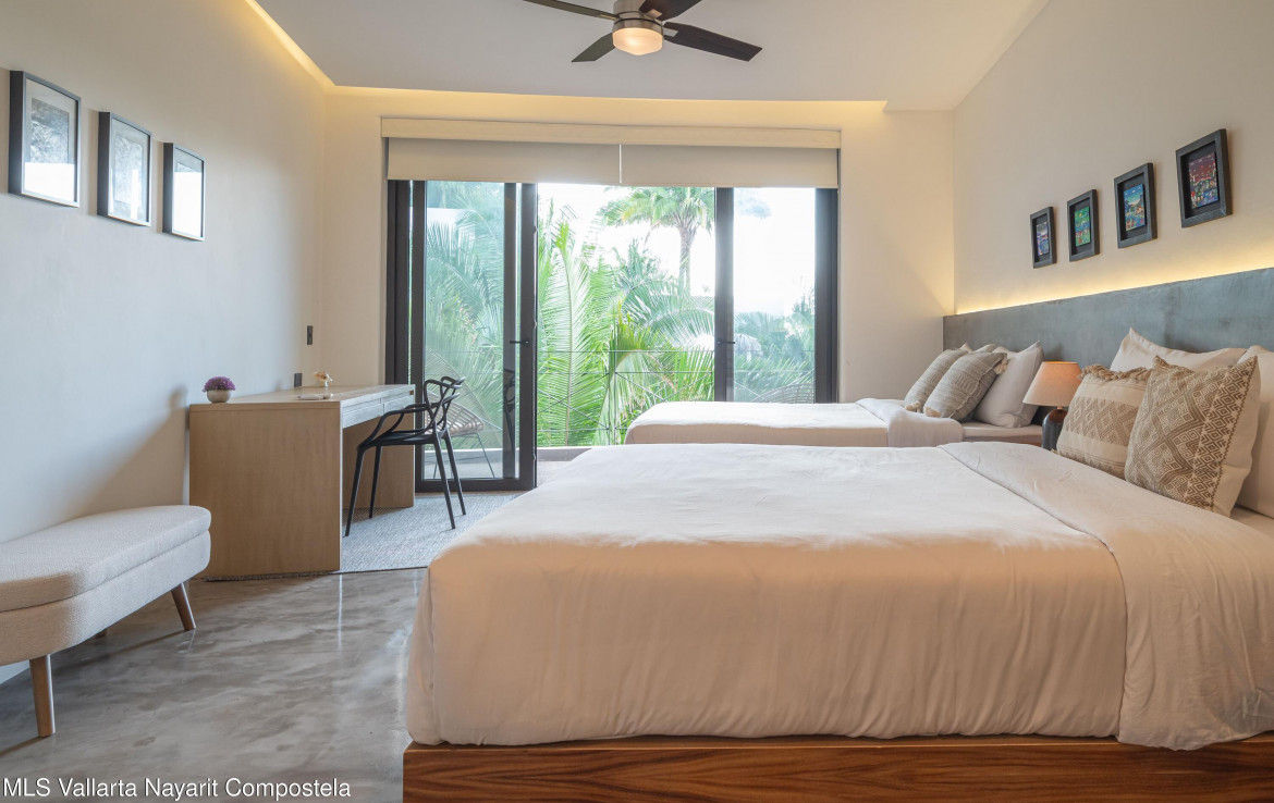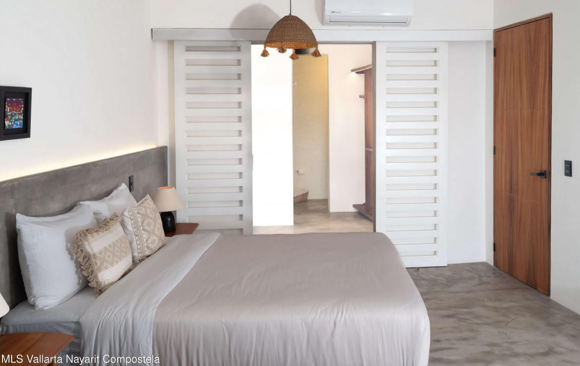 This beautiful condo is located in Attalea, a condo residence just a 7-minute walk to Sayulita’s best beach area on the north side. This brand-new, thoughtfully designed and modern condo on Sayulita’s peaceful north side offers the perfect balance: close enough to walk to the vibrant center, yet far enough to unwind in nature and quiet.The condo has some amazing features: Expansive Bedrooms & Living Area – Bright, comfortable spaces with modern furnishings and thoughtful touches throughout. Oversized Private Balcony – Lush jungle views and generous seating for morning coffee or sunset cocktails. Fully Equipped Kitchen – High-end appliances, quality cookware, and a stunning parota wood dining table on the private deck. Reverse Osmosis Filtered Water