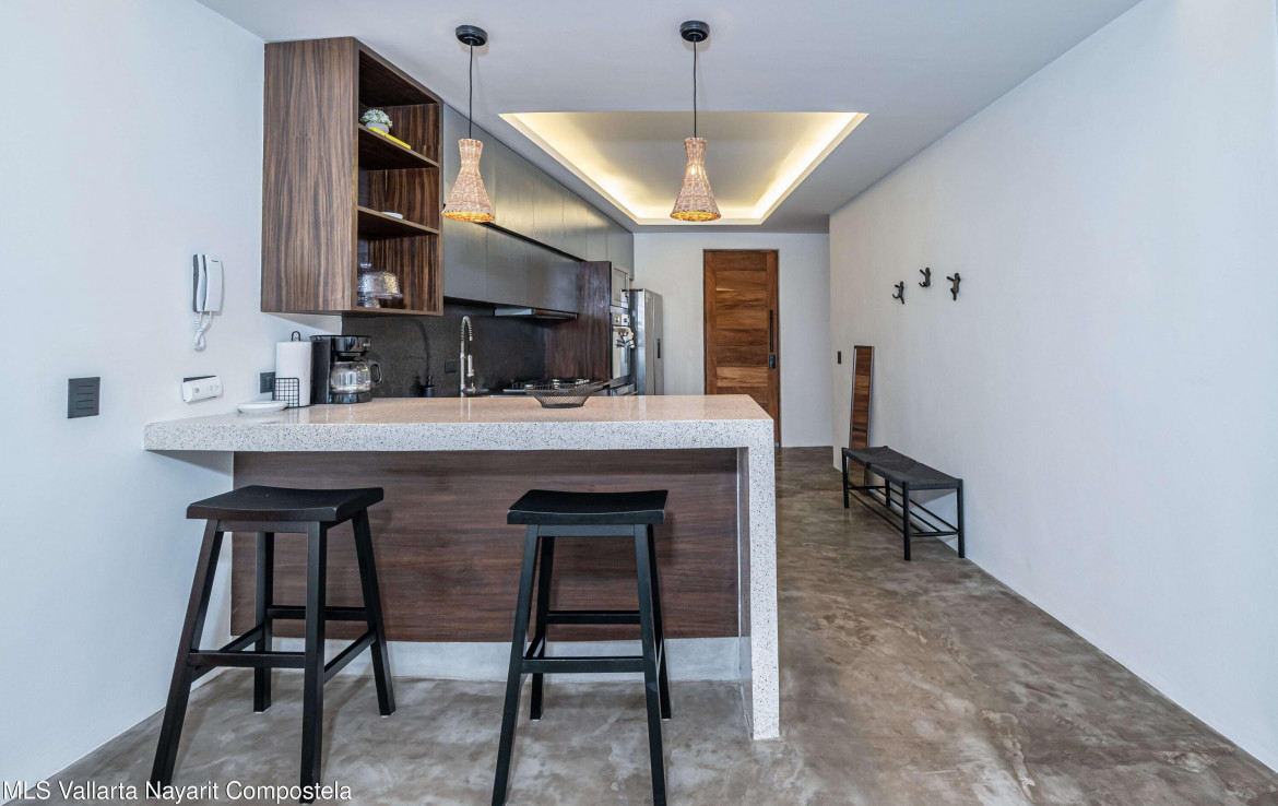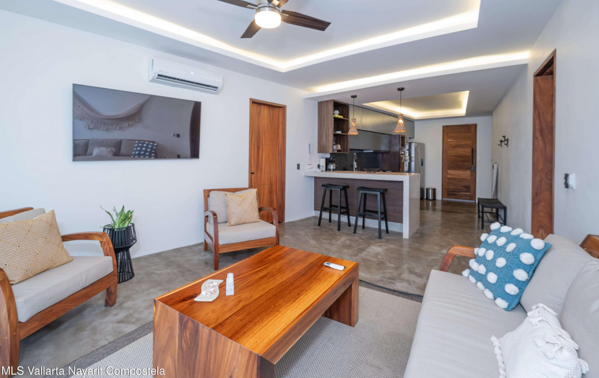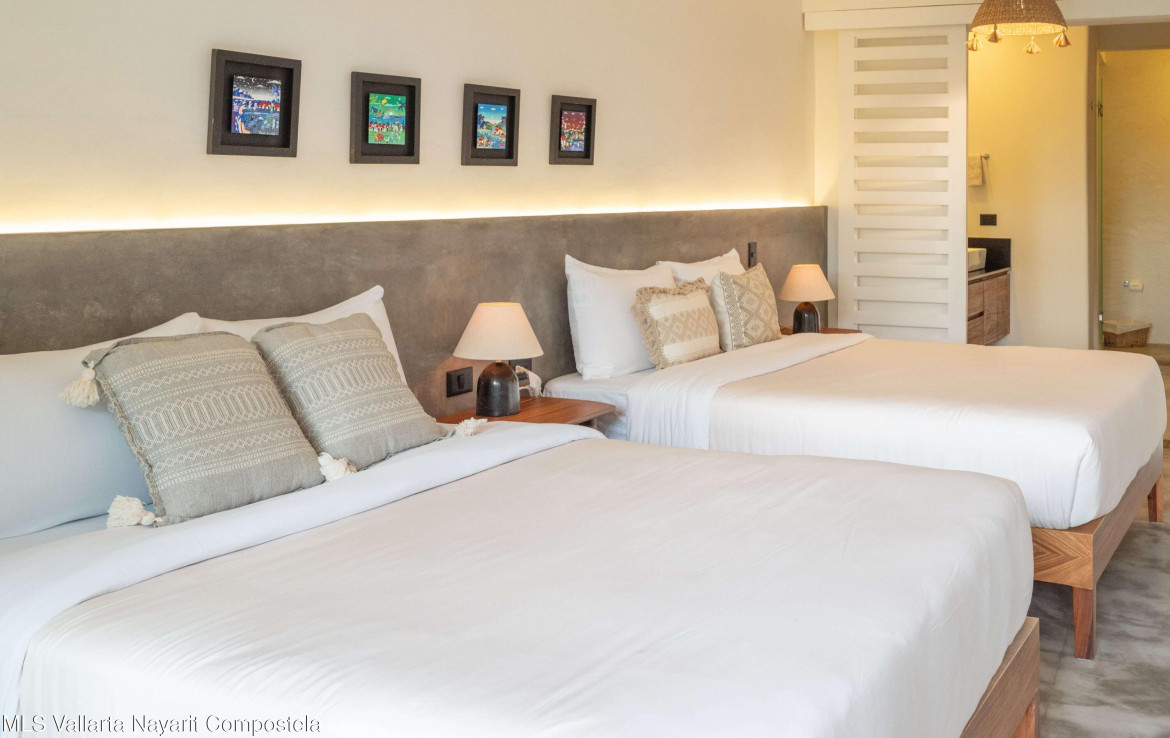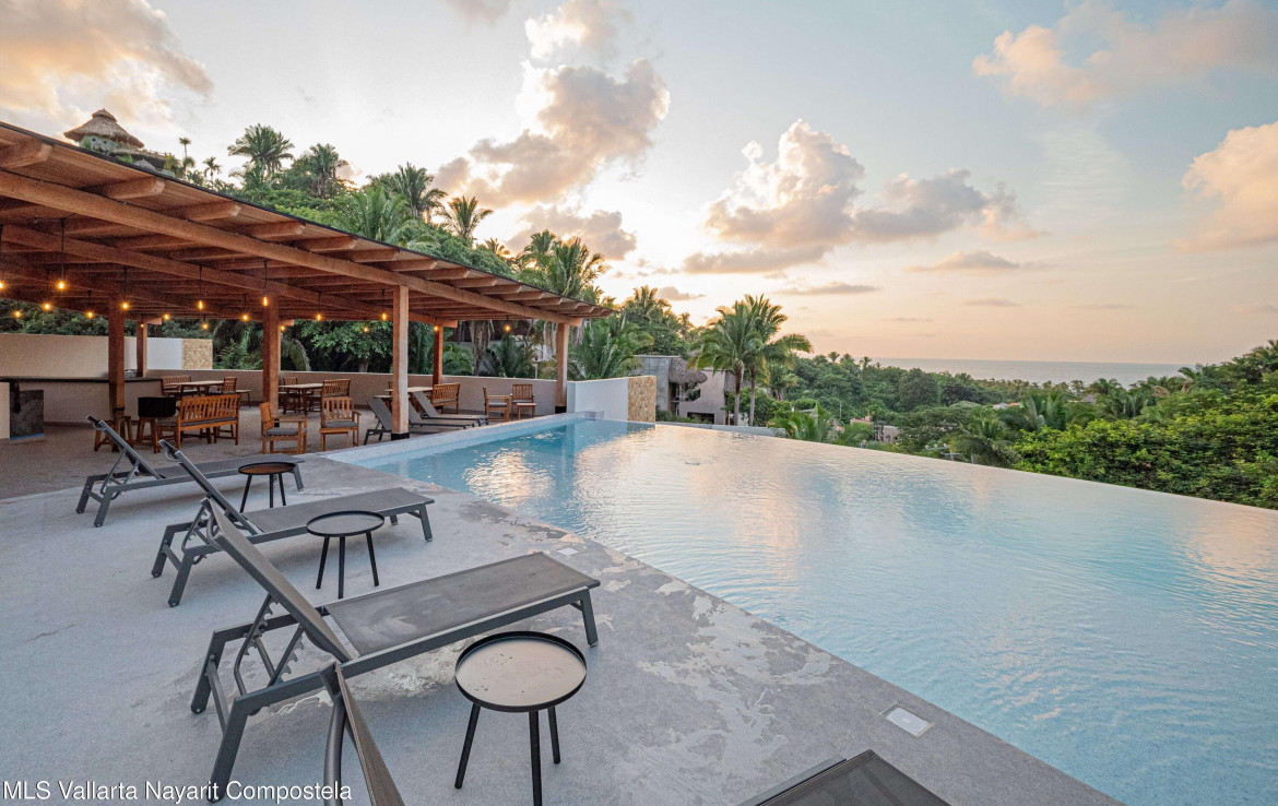This beautiful condo is located in Attalea, a condo residence just a 7-minute walk to Sayulita’s best beach area on the north side. This brand-new, thoughtfully designed and modern condo on Sayulita’s peaceful north side offers the perfect balance: close enough to walk to the vibrant center, yet far enough to unwind in nature and quiet.The condo has some amazing features: Expansive Bedrooms & Living Area – Bright, comfortable spaces with modern furnishings and thoughtful touches throughout. Oversized Private Balcony – Lush jungle views and generous seating for morning coffee or sunset cocktails. Fully Equipped Kitchen – High-end appliances, quality cookware, and a stunning parota wood dining table on the private deck. Reverse Osmosis Filtered Water