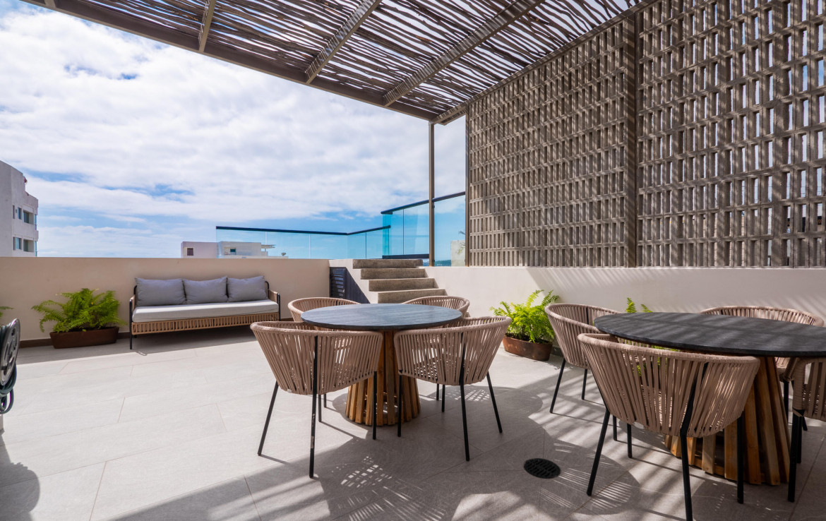 Discover the perfect blend of coastal living and convenience in this stunning one-bedroom condo located just one block from the beach in an exclusive boutique complex. Whether you’re looking for a dreamy getaway, a move-in-ready condo, or an investment-ready rental, this condo delivers it all. The rooftop is a showstopper, featuring an outdoor kitchen, barbecue area, pool with sprawling ocean views, and lounge chairs to soak up the sun.The complex includes a welcoming lobby with administration, underground parking, and an elevator for easy access. Situated close to vibrant shops and restaurants, you’ll have everything.Descubre la mezcla perfecta de la vida costera y la comodidad en este impresionante condominio de un dormitorio situado a solo una cuadra de la playa.