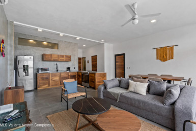 A unique low-density real estate development with luxury amenities, ready to move in, located in the heart of the magical Golden Zone of Bucerias. Architecture inspired by a sailboat, with a curved and organic design that maximizes views and natural ventilation. A natural oasis enhanced by organic landscaping. The unit includes 1 assigned parking space.