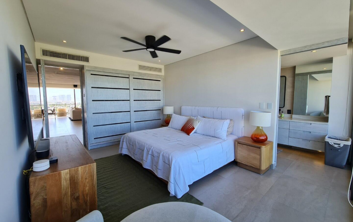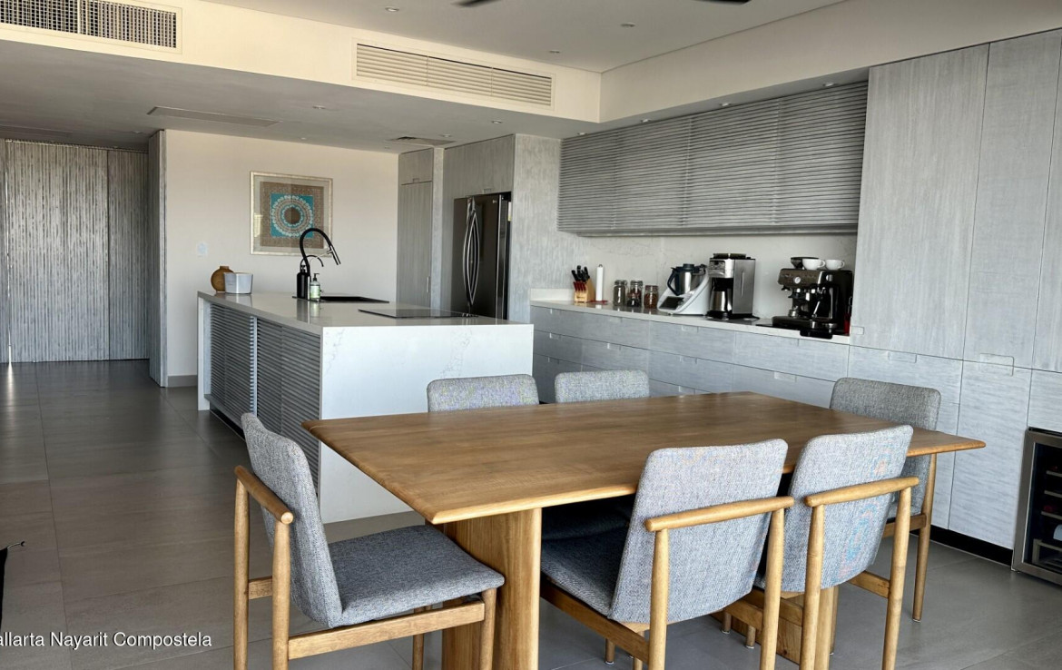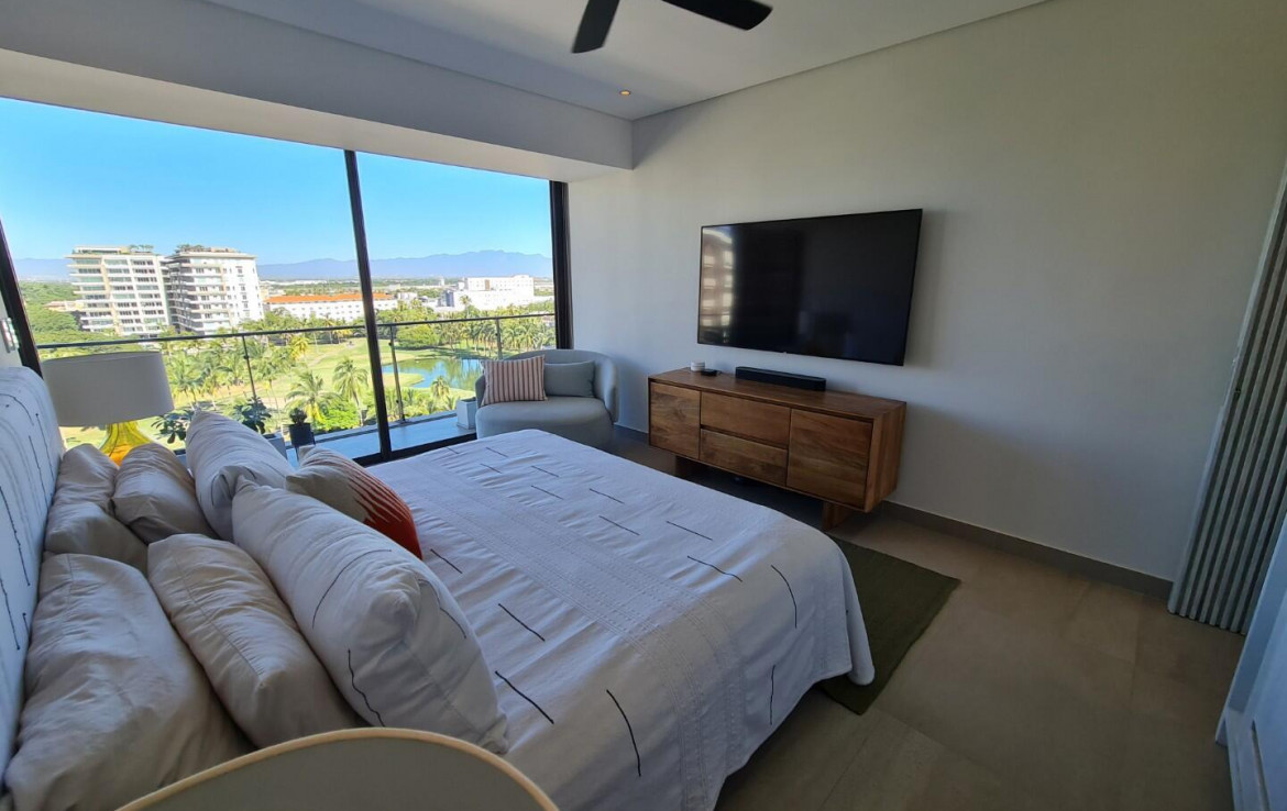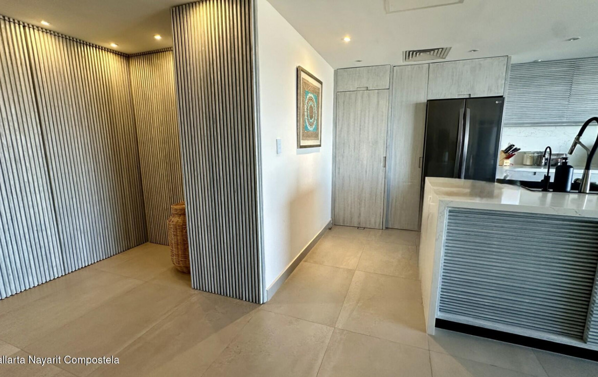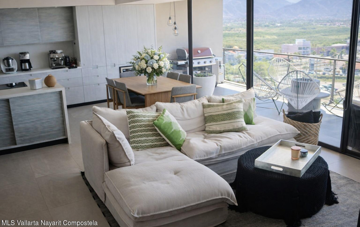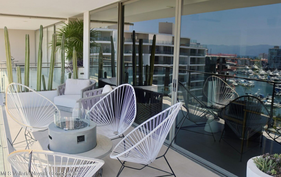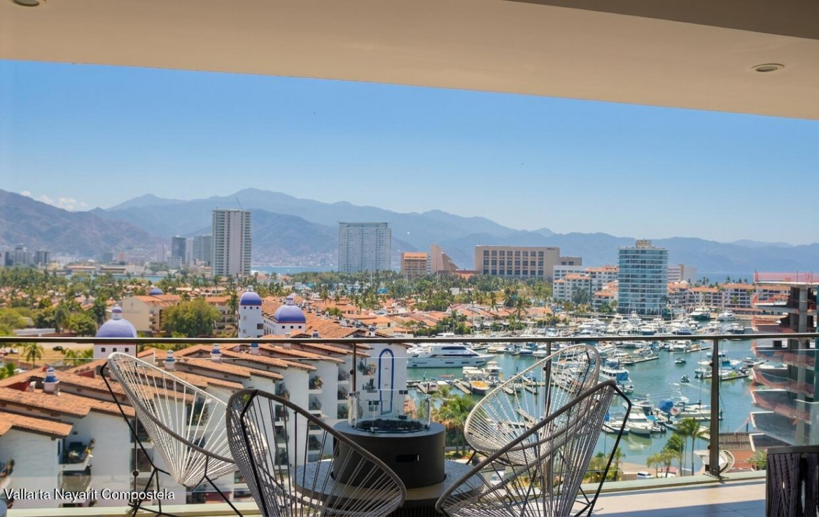Espanol abajo. Welcome to Marina Luxe, a completely remodeled and refined coastal residence in the heart of Marina Vallarta. Located within the prestigious Nima Bay, this remodeled 2-bedroom, 2-bath condo features panoramic marina, golf course, and Sierra Madre views, plus a spacious terrace ideal for relaxing or entertaining. The open-concept interior features high-end finishes, designer furnishings, smart-home features, and seamless indoor-outdoor living through floor-to-ceiling glass doors. Both bedrooms provide comfort and tranquil views. Enjoy exceptional privacy, with just two residences per floor. The property offers resort-style amenities, including pools, spa, gym, rooftop lounge, and