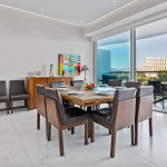This trendy, stylish, and effortlessly cool 3rd-floor residence blends modern sophistication with resort-style luxury, offering peek views of the bay, lush gardens, and surrounding mountains. Designed for both relaxation and entertaining, the open-concept layout features a high-end chef’s kitchen with a waterfall-edge granite island, sleek stainless-steel appliances, and custom cabinetry, all complemented by a stylish bar seating area. The bright and airy living and dining spaces flow onto an oversized covered terrace, a private retreat framed by swaying palms and tropical gardens. Two restful and serene bedrooms open onto a spacious private terrace, capturing territorial and peek ocean views.