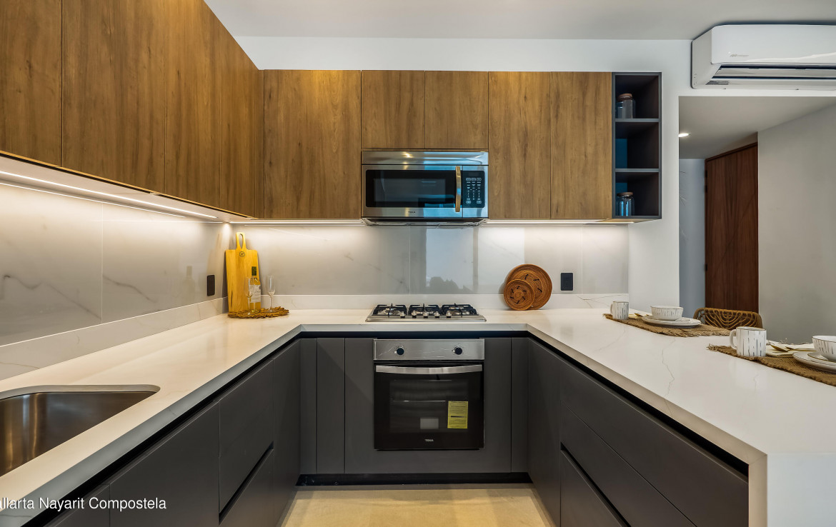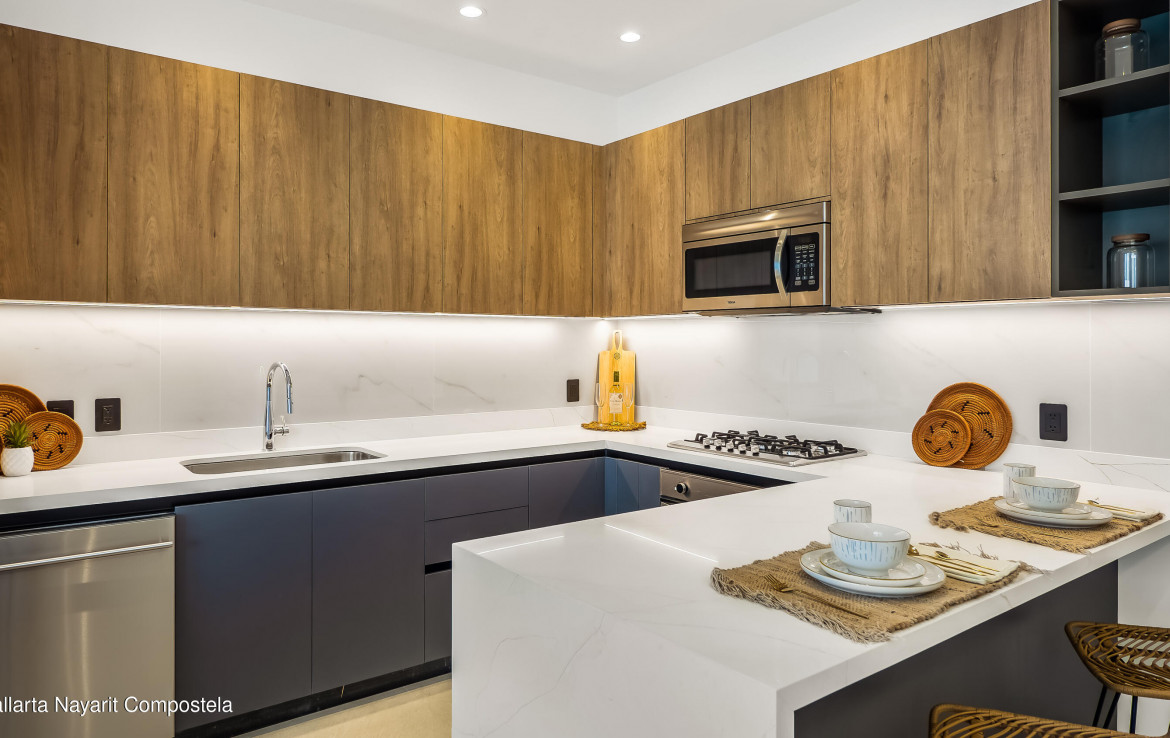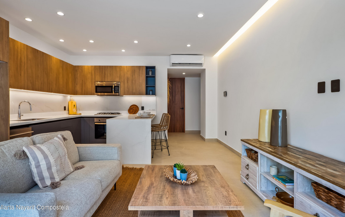 English below. Ya construido y listo para ti! Bonita apartamento de 1 recamera con encimeras de cocina de cuarzo y terraza. Desarrollo boutique de 15 condominios, piscina infinita climatizada en la azotea con vistas panoramicas, gimnasio al aire libre, ascensor, lobby, seguridad 24-7. 60 pasos de la playa, 2 cuadras del centro, 1 cuadra de la Plaza Los Amores. Already built and ready for you! Gorgeous 1 bedroom with quartz kitchen countertops and great balcony. Boutique development 15 condos, rooftop heated infinity pool with panoramic views, open air gym, elevator, 24-7 security, lobby, secured entry. 60 steps to the beach, 2 blocks to downtown, 1 block to Los Amores Plaza.
