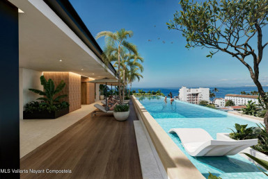 Disfruta de impresionantes atardeceres, amaneceres, fuegos artificiales y mas, con una espectacular vista panoramica de la bahia. MDY es, sin duda, el desarrollo mas exclusivo en el centro de Puerto Vallarta, destacando por su sistema de construccion en concreto y acero, disenado para mitigar el impacto del cambio climatico. Ademas, somos el unico desarrollo en la zona con certificacion internacional LEED (edificacion sustentable), reafirmando nuestro compromiso con el medio ambiente.Ubicado en la colina y rodeado de exuberante selva, MDY ofrece vistas inigualables de toda la bahia, el escenario perfecto para disfrutar la belleza de Puerto Vallarta. Nuestros finos acabados interiores de marmol y cuarzo, junto con nuestro equipamiento certificado, nos convierte