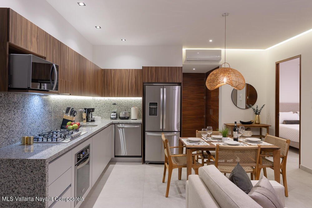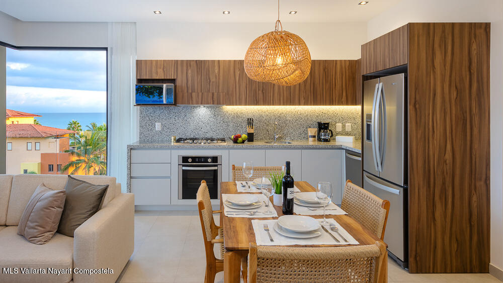 MINA, from renowned developer CRAGSA right in the heart of the coveted Golden Zone in Bucerias. Just steps from one of the most beautiful soft-sand beaches in the Riviera Nayarit, MINA is a boutique residential community designed in sophisticated harmony with its natural surroundings, offering spectacular ocean views from multiple vantage points. This 5th floor thoughtfully crafted two-bedroom, two-bathroom residence showcase elegant architectural details, premium finishes, and high-quality appliances throughout, and is fully furnished to ensure a seamless, move-in-ready experience. This private home also includes dedicated parking and secure storage, providing added convenience and peace of mind for owners and long-term residents.