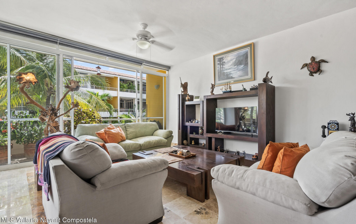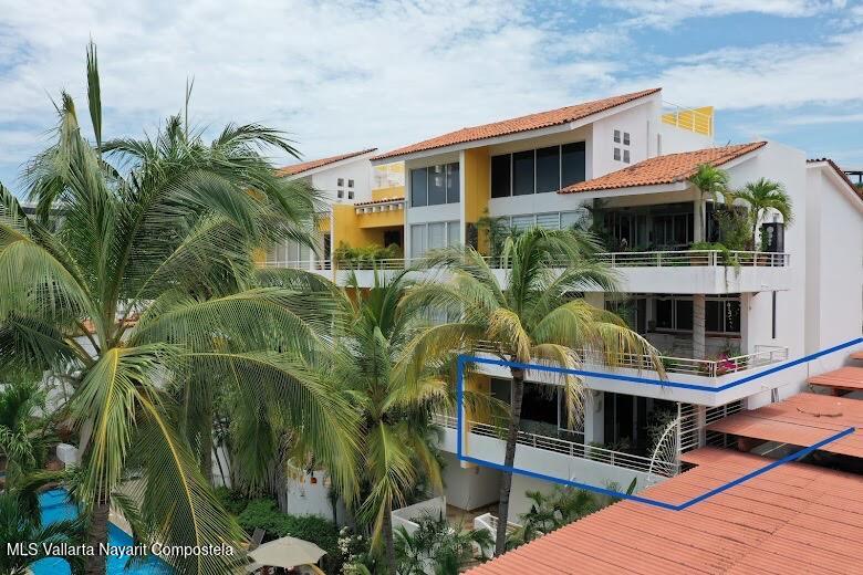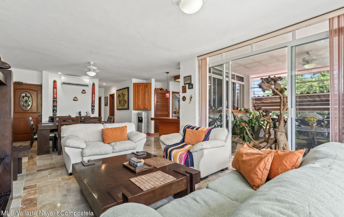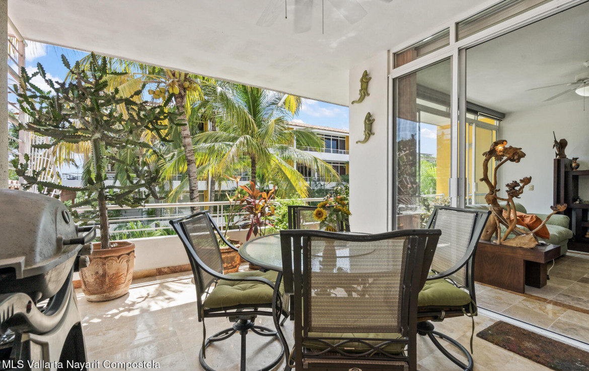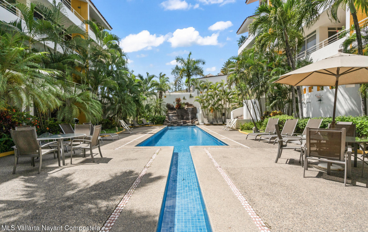 Experience the lifestyle of Bucerias at Moona Condominium, just a five-minute walk to the beach and located at the entrance of the exclusive Golden Zone, a prime location surrounded by gourmet restaurants, cafes, art galleries, hospitals, banks, and supermarkets. This condo for sale is on the first level and comes fully furnished, move-in ready or perfect for rental income. It features two spacious bedrooms, two full bathrooms, a terrace, a private backyard garden, a laundry room, and private parking. Moona offers the perfect balance of comfort and security with amenities that include solar panels for common areas, a heated swimming pool, controlled access, 24/7 security, a gym, a reading lounge, and a rooftop with sun loungers and breathtaking panoramic views.