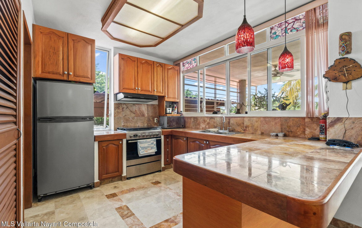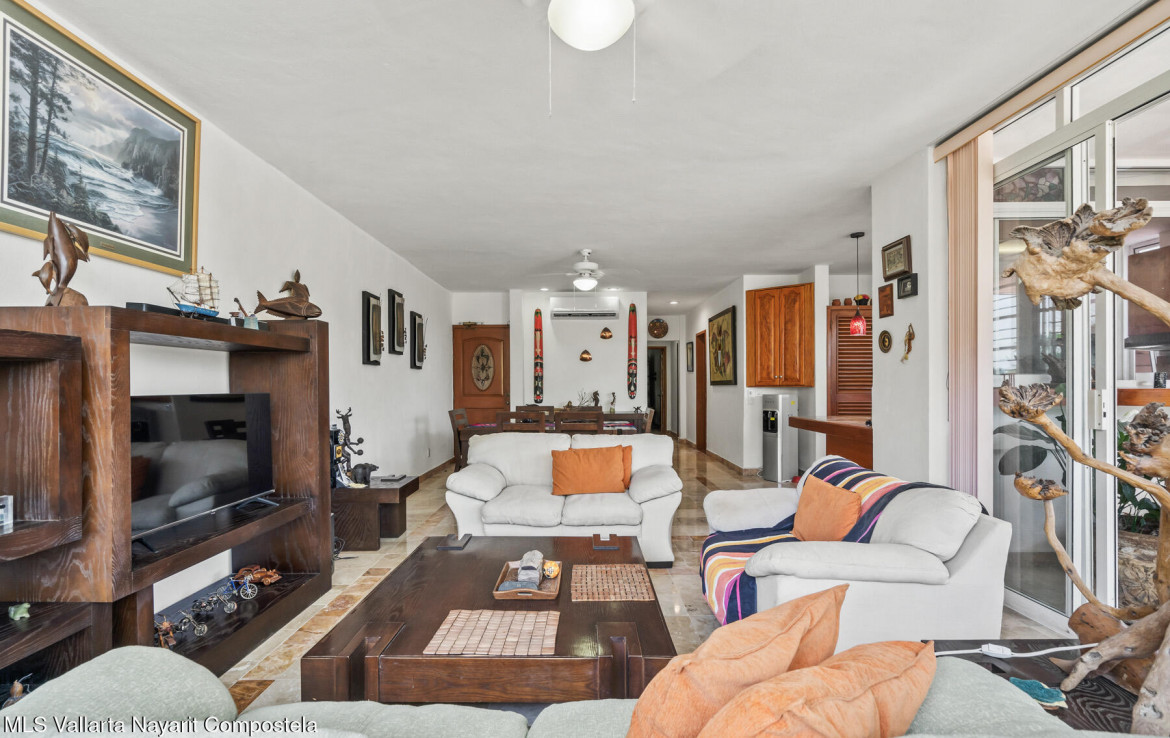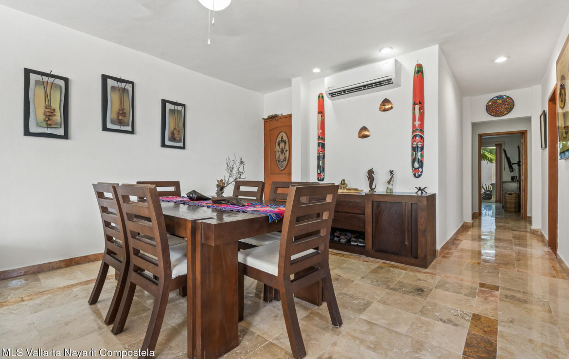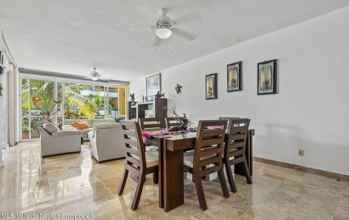 Experience the lifestyle of Bucerias at Moona Condominium, just a five-minute walk to the beach and located at the entrance of the exclusive Golden Zone, a prime location surrounded by gourmet restaurants, cafes, art galleries, hospitals, banks, and supermarkets. This condo for sale is on the first level and comes fully furnished, move-in ready or perfect for rental income. It features two spacious bedrooms, two full bathrooms, a terrace, a private backyard garden, a laundry room, and private parking. Moona offers the perfect balance of comfort and security with amenities that include solar panels for common areas, a heated swimming pool, controlled access, 24/7 security, a gym, a reading lounge, and a rooftop with sun loungers and breathtaking panoramic views.