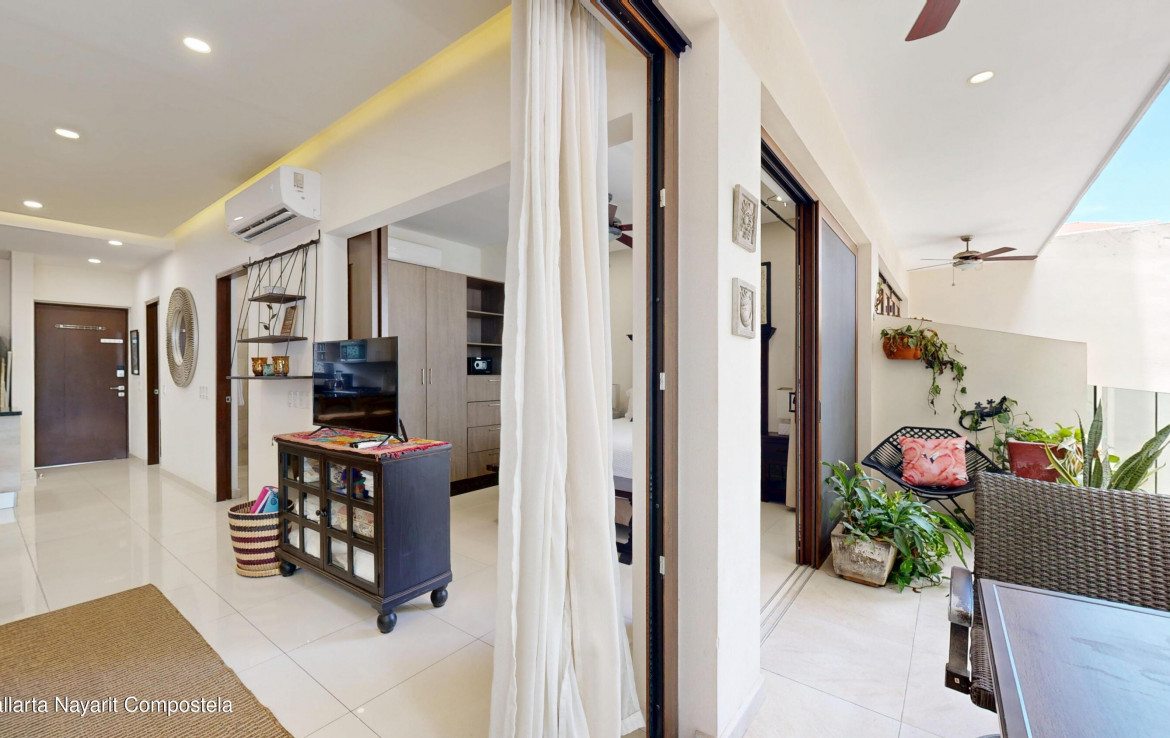 This exceptional luxury turn-key condo unit is just steps from the beach! This bright and open unit features a high-end kitchen complete with granite countertops, stainless steel appliances, and custom cabinetry. The inviting dining area comfortably seats six, while the cozy living room opens to a beautiful, covered terrace surrounded by lush greenery. The terrace offers additional seating and is perfect for yearround enjoyment, The stylish bathroom includes a walk-in rain shower, granite countertop, ample closet space In the bedroom, ceiling fans and separate air conditioning. The building offers superb rooftop amenities, including a gym, sauna, BBQ area, quiet spaces for yoga or reading, two stunning swimming pools with spectacular city and ocean views, trul
