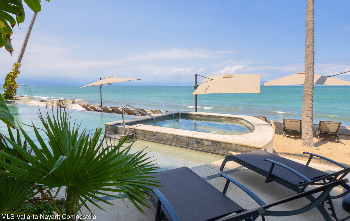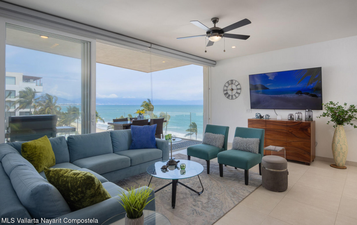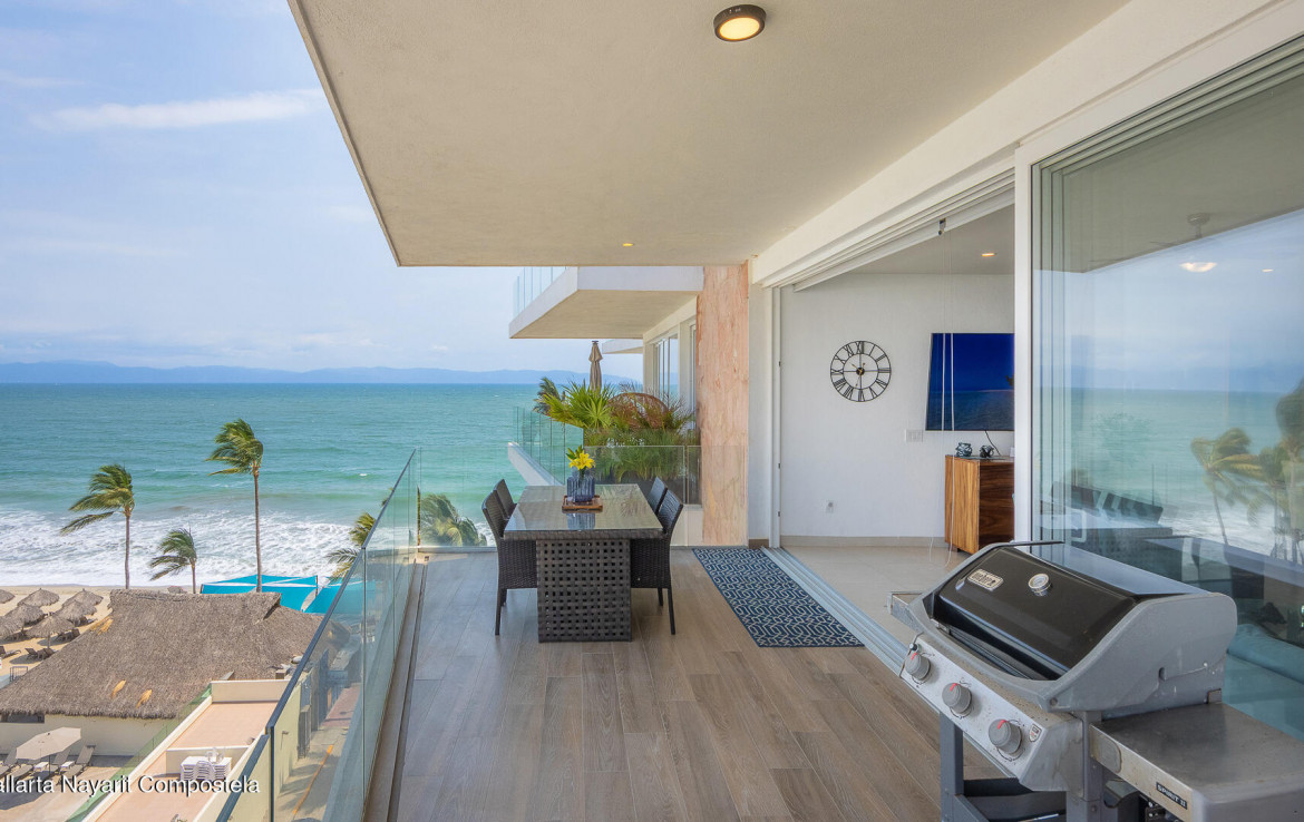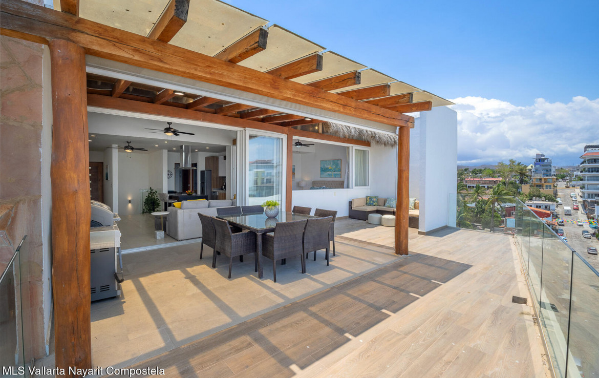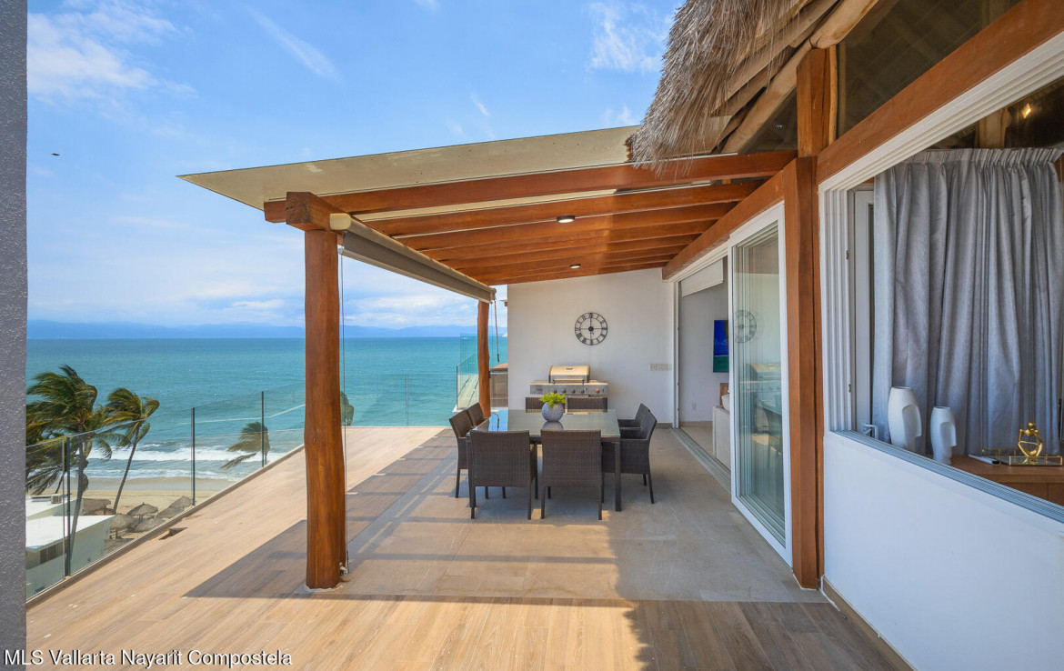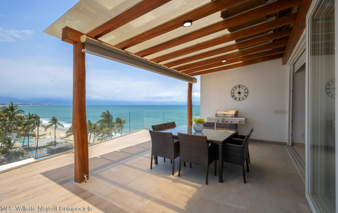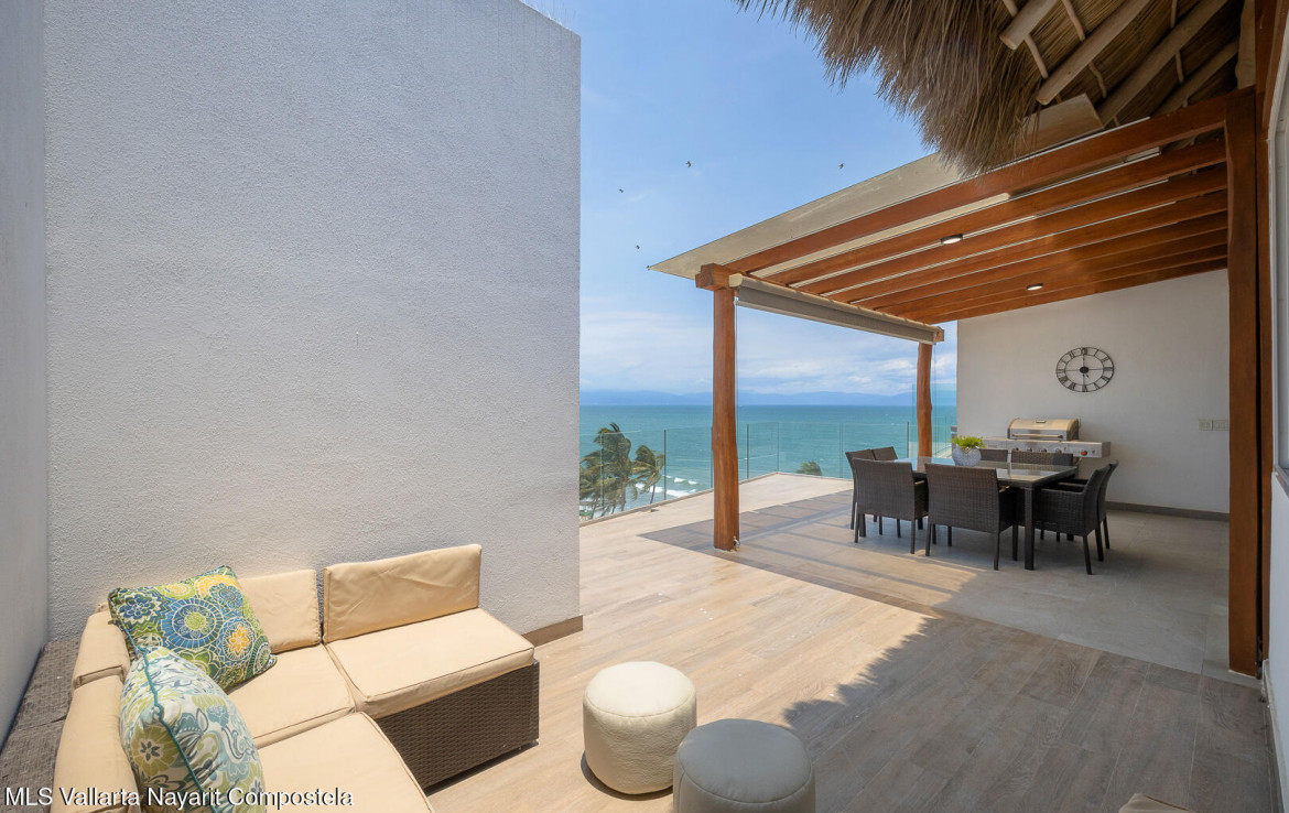 This stunning 2 level Ocean front penthouse in Zona Dorada in Bucerias offers amazing ocean views. Each level has its own spacious terrace. Each level also offers 2 separate entrances, if you choose to rent individually or access via staircase internally. The 1st level features 2 bedrooms with full bathrooms, and full kitchen. Rooftop level includes a master suite bedroom & bathroom, 1/2 bath, 2nd kitchen & laundry room. Each level is beautifully furnished. Fine finishings throughout. The property comes with a deeded parking space. Residents can also enjoy an infinity pool over looking the beach. Property offers a gym & small private restaurant. 24/7 security. Walking distance to all Golden Zone restaurants, cafes & boutique shops. Enjoy a piece of paradise with stunning ocean views
