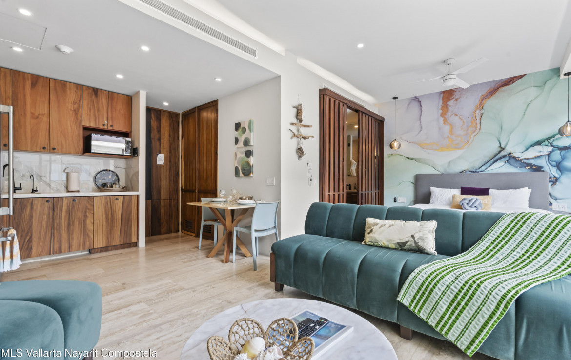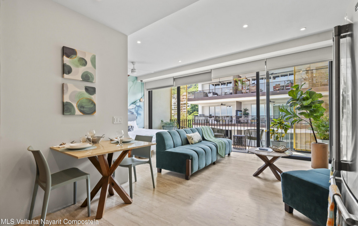 Nomada PHD combines contemporary design with a privileged location in the Romantic Zone. This fully furnished 667 ft studio residence is ready for immediate use–whether as a personal retreat or a rental property generating income from day one. The condo features an open layout with high-quality finishes, a private balcony with ocean views, and walking access to restaurants, galleries, nightlife, and Los Muertos Beach. Its strong rental appeal is enhanced by building amenities, including a spectacular rooftop with bar and lounge areas, where panoramic views of the bay and town create the perfect backdrop for relaxation and entertaining.