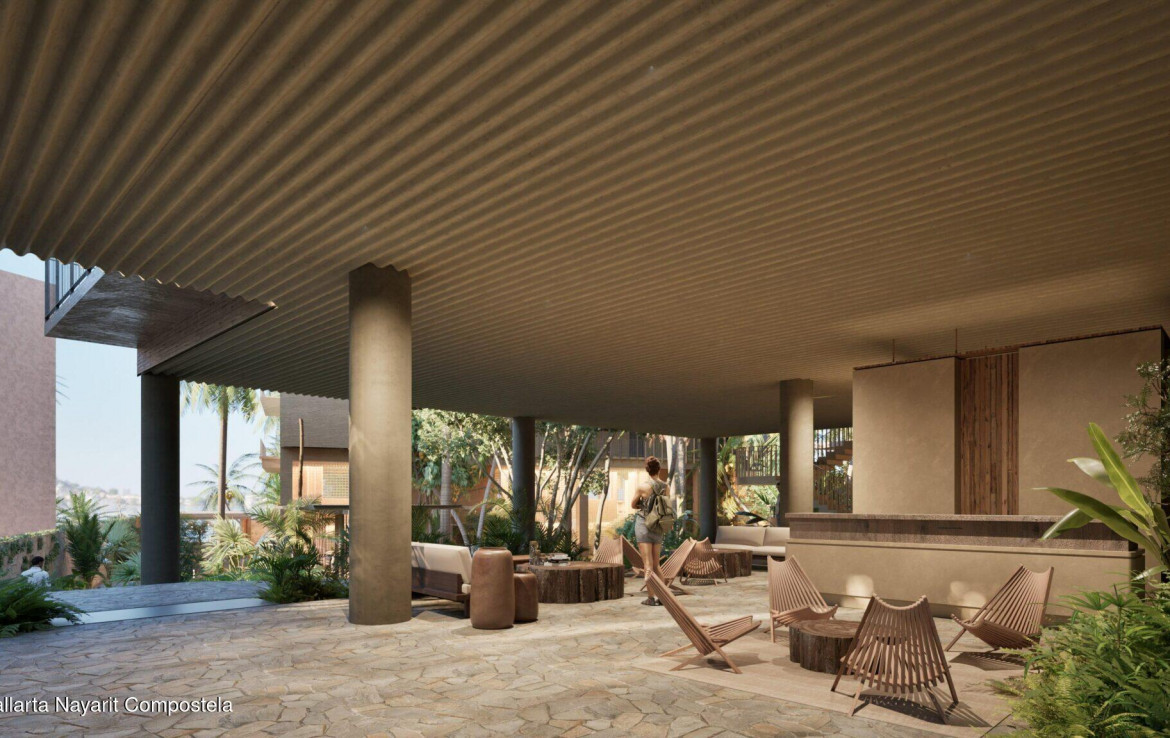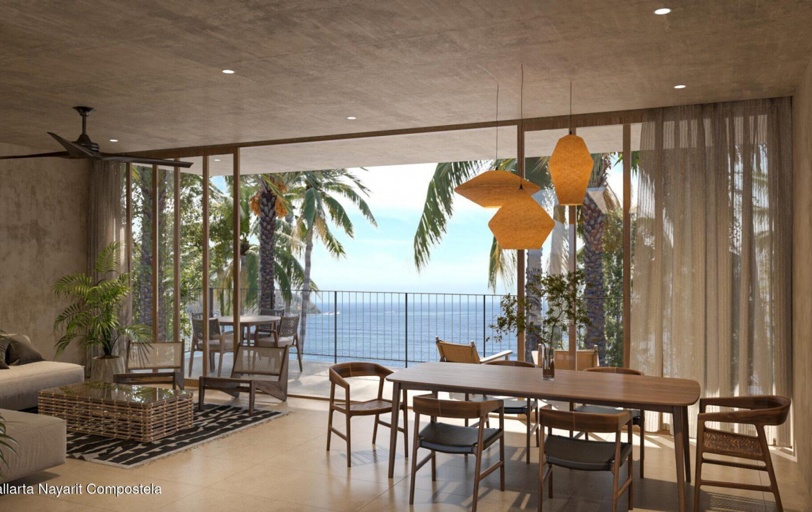 Olaya sits in the heart of Sayulita on the Riviera Nayarit. Located on the north side of town, this exclusive gated community is home to 45 beachfront units. Offered in a variety of unit types, the 2 Bedroom Social is a reflection of this amenity-rich development. With the kitchen located on the right upon entry, this open floor plan concept is the perfect environment to relax at home or entertain friends and family. Open spaces flow through the residence highlighting natural light and a classic boho beach design. The units are 123 square meters and boast an impressive amount of features inside and out. Each bedroom has its own ensuite and there is an additional half bath in the living area