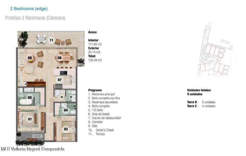 • Recámaras: 2