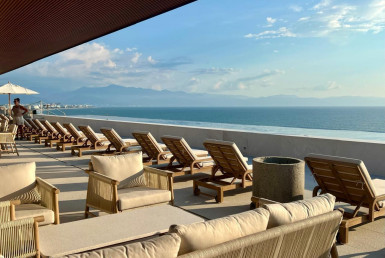 Oro Azul in the Bucerias Golden Zone is the pinnacle of elevated coastal luxury, just steps from the sand. This stunning 2 bed, 2.5 bath residence showcases exquisite detail and masterful craftsmanship throughout. A dramatic wraparound terrace with floor-to-ceiling glass floods the space with light and ocean breezes. The rooftop stuns with a 90-ft lap pool, panoramic views, gym, and top-of-the-line outdoor kitchen with chic lounge areas–moments from the best dining, galleries, and boutiques.****Oro Azul en la Zona Dorada, la mejor zona de Bucerias, ofrece lujo costero a pasos del mar. 2 recamaras, 2.5 banos, finos acabados y gran diseno. Terraza envolvente con ventanales de piso a techo, luz natural y brisa marina. Espectacular rooftop con alberca, vistas de 360, gym y cocina de alta gama