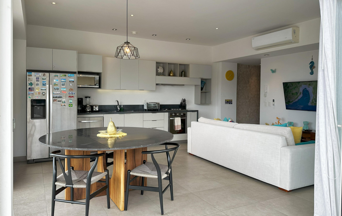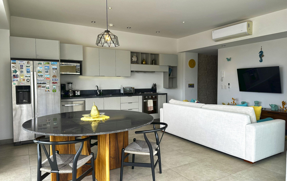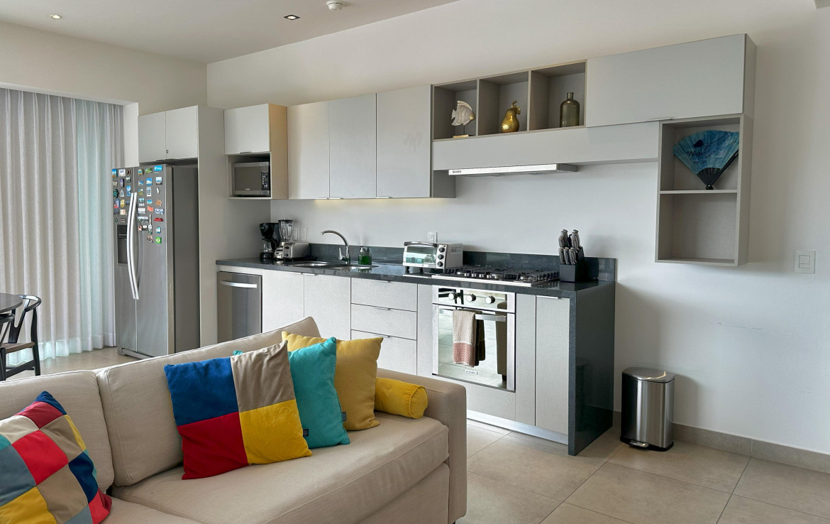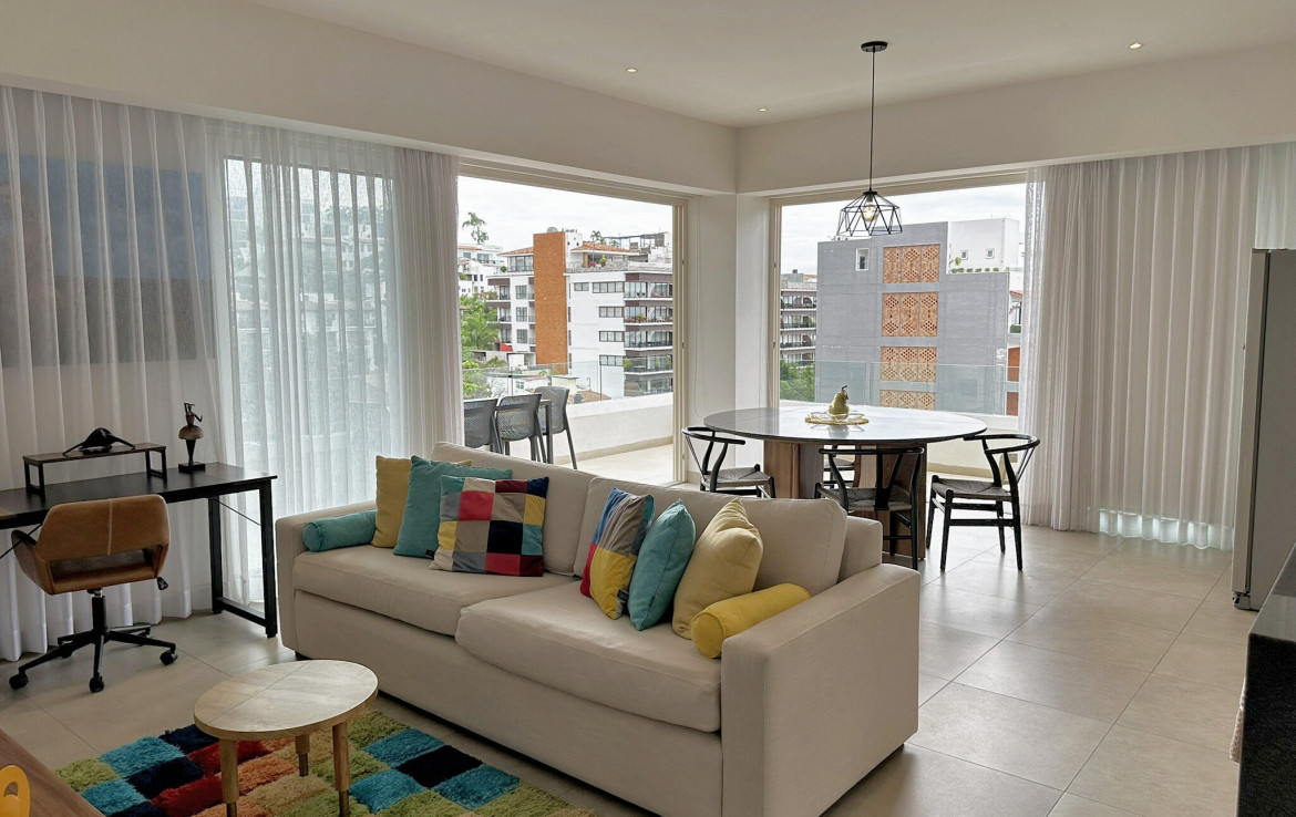 Elegante y moderno departamento de 1 recamara y 2 banos cuenta con una distribucion cuidadosamente disenada, se vende amueblado, con cajon de estacionamiento y bodega. Discover urban luxury living in this sought-after 6th floor corner unit at Pavilion Condominios, nestled in the heart of the enchanting Romantic Zone. This stylish and contemporary 1-bedroom, 2-bathroom residence boasts a thoughtfully designed layout and comes fully furnished, ensuring you can move in and start enjoying the lifestyle right away. The expansive windows on two sides flood the living spaces with natural light while offering stunning views of the surrounding cityscape and mountains One of the standout features of this unit is the included underground secure parking and storage.