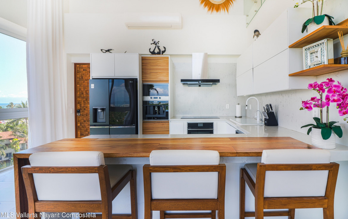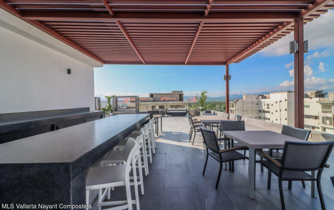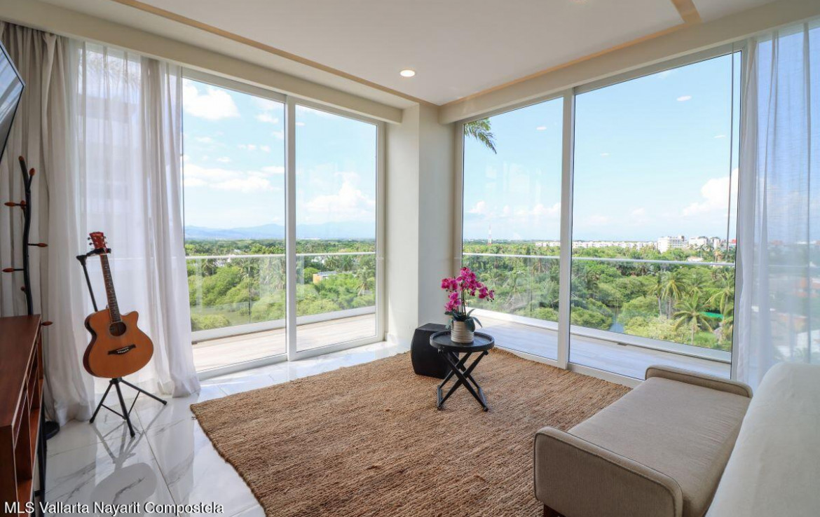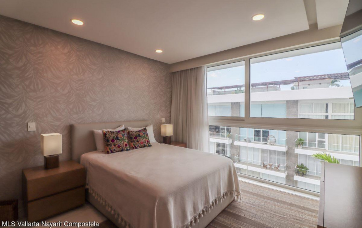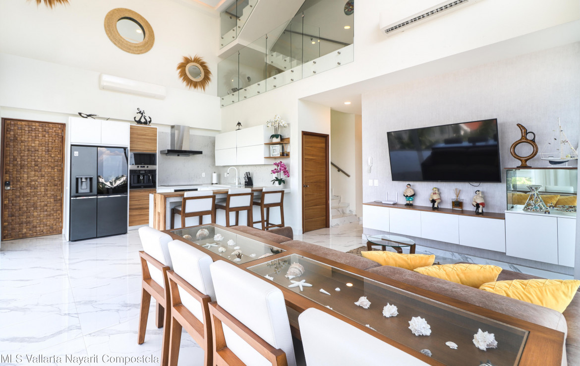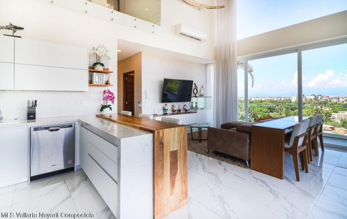 A residence where design, spaciousness, and surroundings blend in perfect harmony. This three-bedroom, five-bath penthouse offers a sophisticated lifestyle, with spaces focused on comfort and a direct connection to nature. Each bedroom is a bright sanctuary with large windows and private terraces overlooking the canal and pool. The fully equipped kitchen and living room feature double-height windows with electric blinds that elegantly control natural light. The main terrace includes dining area, and jacuzzi, perfect for enjoying uninterrupted views of the canal, villas, mountains, and distant sea. Located in Quinta San Miguel Ocean & Canal, the community offers a pool, gym, rooftop, and canal for water activities. Designed for those seeking the exceptional in Nuevo Vallarta.