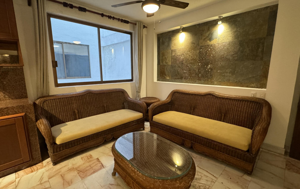 Perlas de las lomas is a well established building on Amapas neighborhood. This excellent location allows you to walk to beach in 5 mins or downtown in 10 mins. This condo is located on floor number 4 of the total 8 floors on building. The building has 2 entrances one on the 200 highway and the second one in sierra de los pinos street.This condo has 2 bedrooms, kitchen-living room a full bathroom and laundry room.Marble floors throughout the unit, beautiful bathroom and wide and large laundry area.