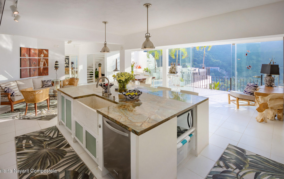 Bienvenido a Iguana PH1! Esta hermosa casa, ubicada en las colinas de Mismaloya (a unos 20 minutos al sur de Puerto Vallarta), fue remodelada a fondo en los ultimos anos y cuenta con garaje para 2 autos con espacio de almacenamiento, una cocina espectacular, 2 amplias terrazas (con increibles vistas de la bahia, la playa y las montanas), una piscina, 3 recamaras y 4 banos completos. Caracteristicas adicionales: * Una magnifica e impresionante isla de cocina con encimeras de cuarzo * Electrodomesticos de alta gama (incluyendo dos vinotecas) * Un sistema de filtracion de agua centralizado para toda la casa * Un calentador de agua a demanda * Lavadora y secadora de gran capacidad * iRobot programado para aspirar la planta principal *