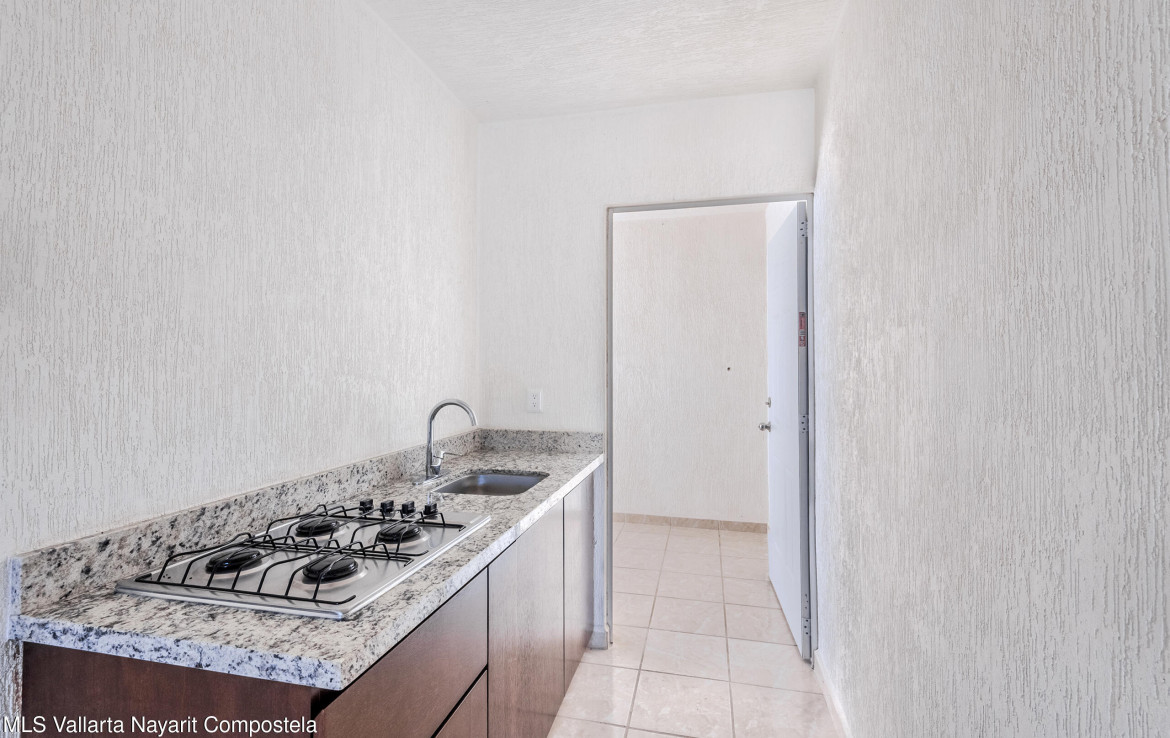 Departamento en planta baja de 2 recamaras, 1 bano, cocina integral cubierta de granito y madera de parota, comedor y sala, patio de servicio y patio abierto.Condominio seguridad 24/7 2 albercas, canchas deportivas, parques con juegos infantiles, ista para correr que llega a mirador con area de asadores.