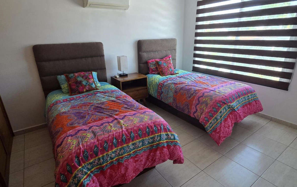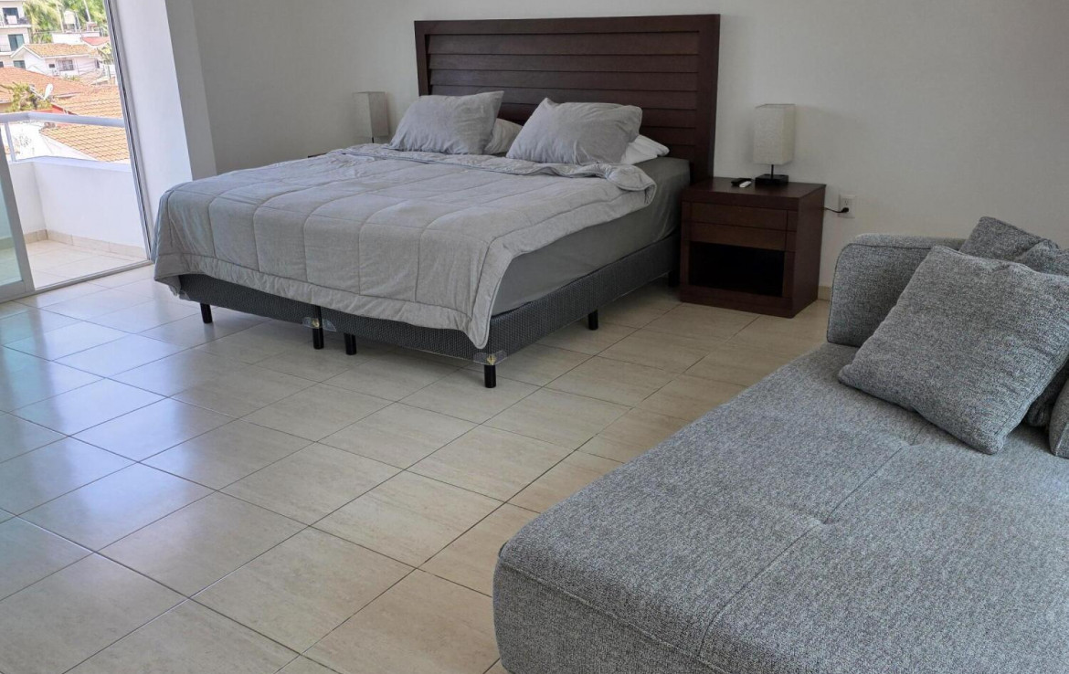 (ENGLISH BELOW)Maravilloso condominio de 2 plantas, decorado por un disenador, con numerosos balcones en ambos niveles. La amplia cocina con isla se integra con la sala de estar y una oficina o sala de television independiente. La planta principal cuenta con 2 dormitorios y 1 bano. La planta superior cuenta con el dormitorio principal en suite con un amplio bano, patio y balcon. Construccion de hormigon macizo con madera maciza de Amapa en toda la vivienda. Listo para entrar a vivirWonderful designer decorated 2 story condo featuring numerous balconies on both levels. Large kitchen with island flows into the living room area and separate office or TV room. Main floor has 2 bedrooms, 1 bathroom. Upper Level features master bedroom suite with large bathroom, patio, and balcony.
