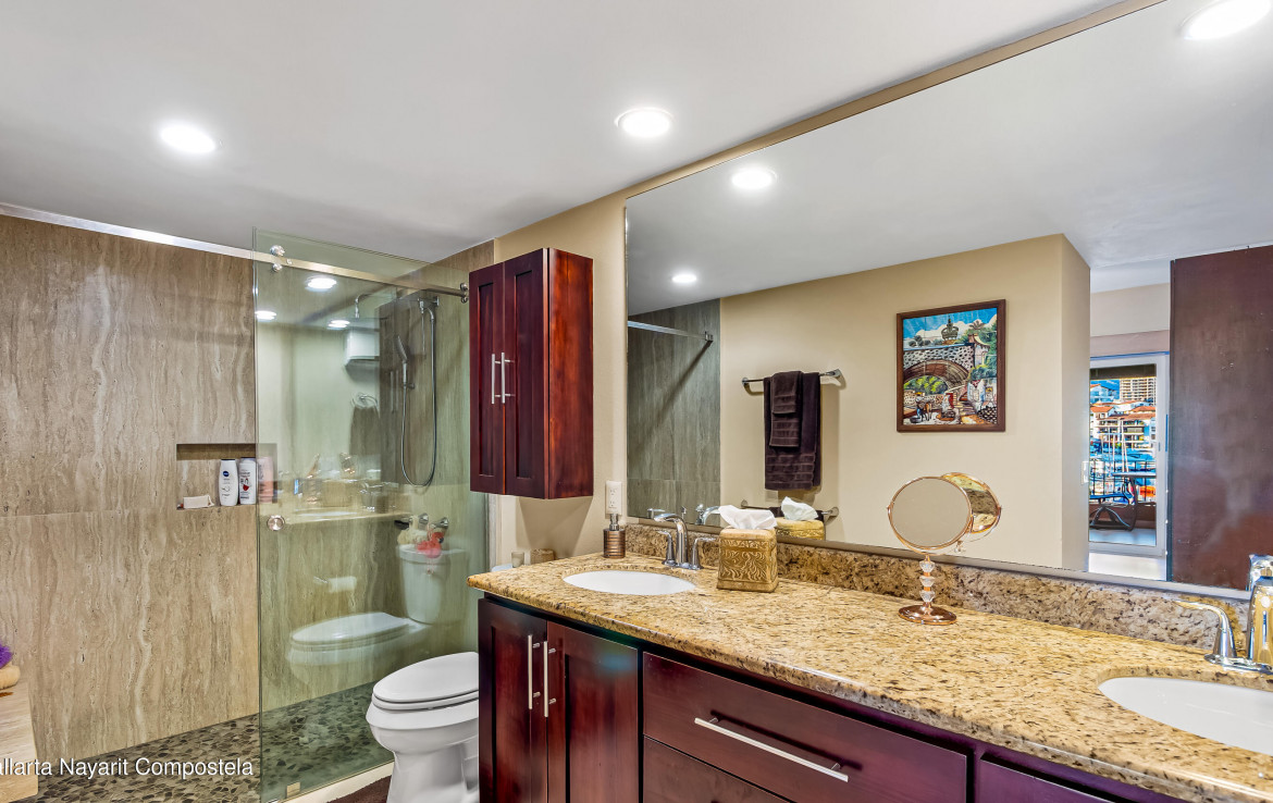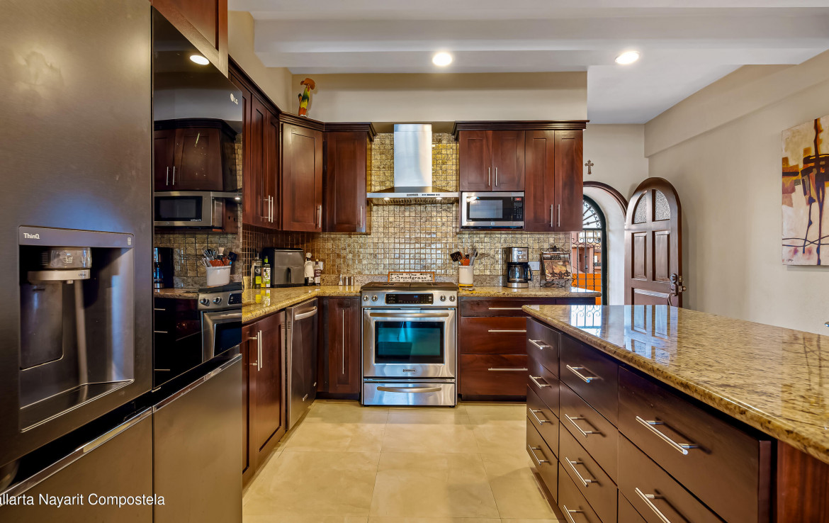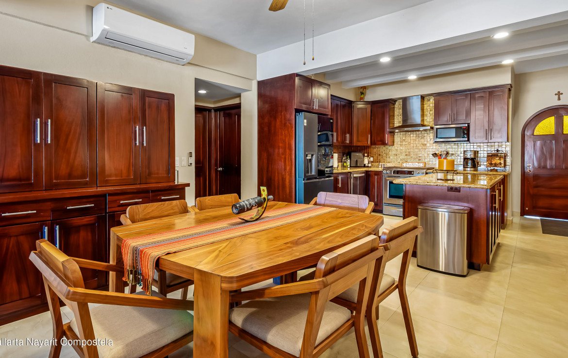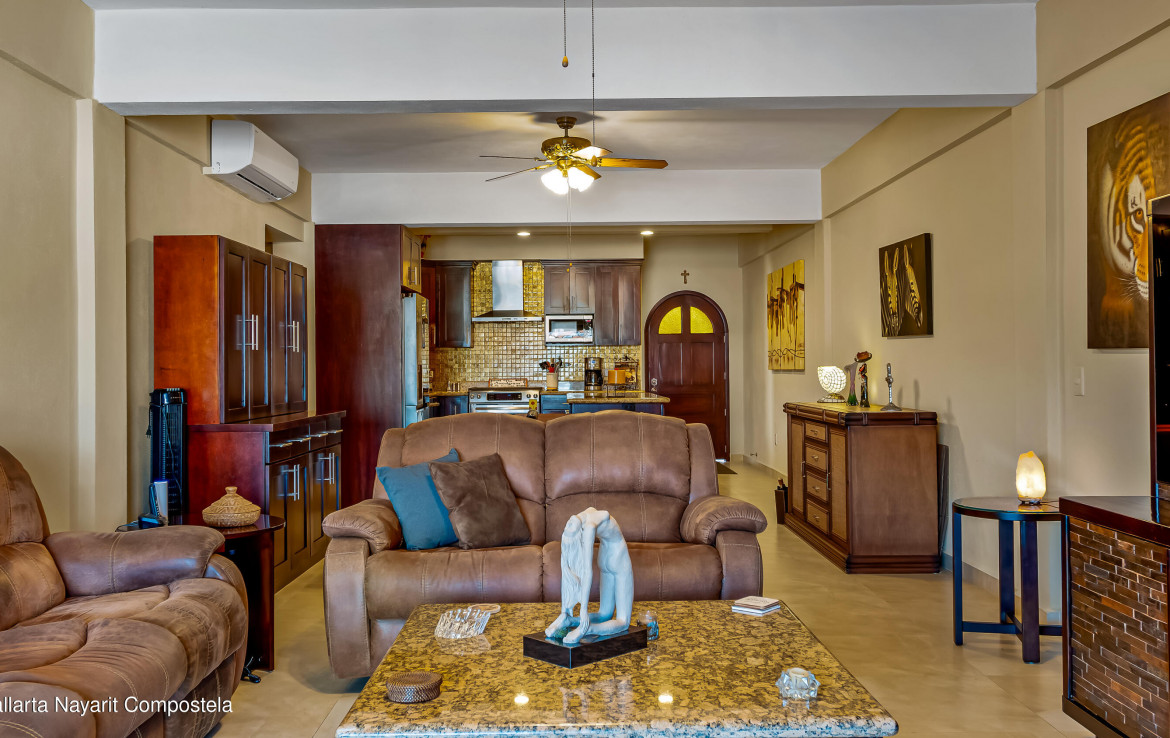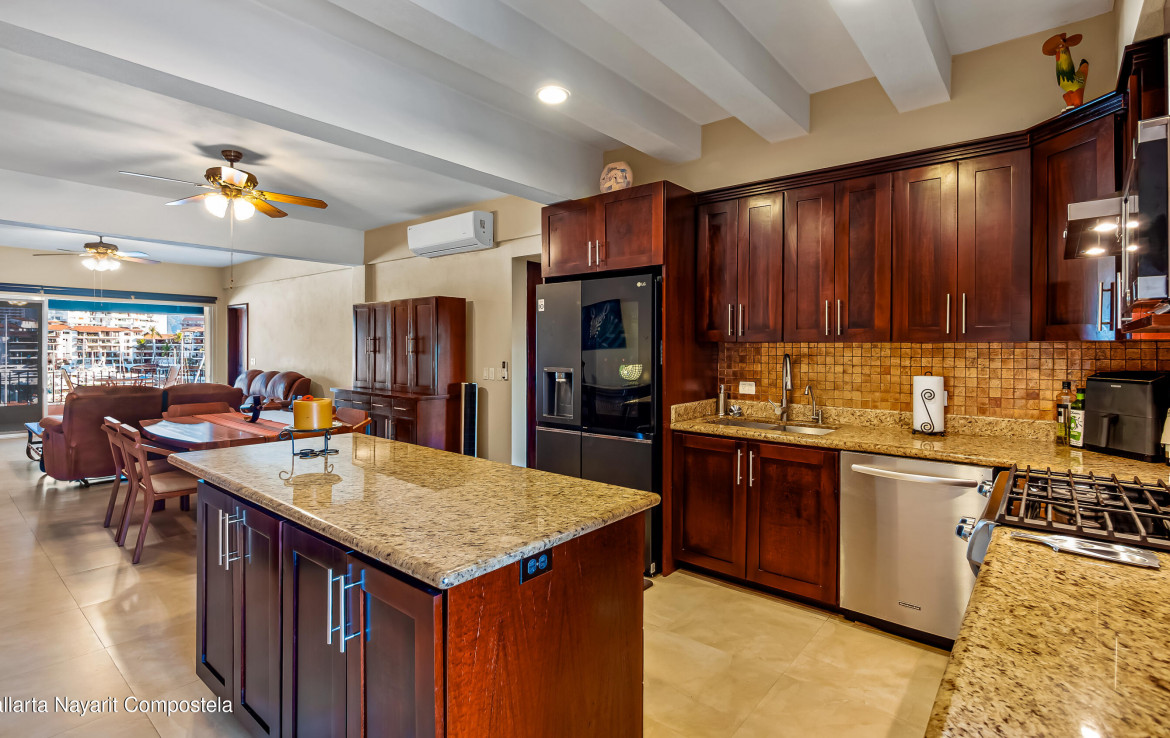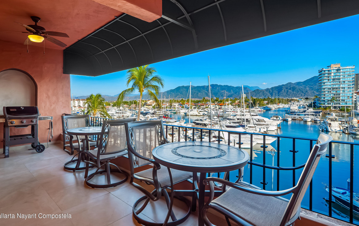 Discover the ultimate in luxury living w/this beautifully renovated 2-bedroom, 2-bath condo, offering breathtaking views of the spectacular Marina Vallarta. Ideally located in one of the most sought-after spots, this condo is just steps from the vibrant marina, across from the Golf Course, only two blocks from the beach, and a quick 7-minute drive from the airport!This home boasts an open-concept design w/ soaring 9-ft ceilings, creating a seamless flow between the indoor & outdoor spaces–perfect for embracing the laid-back, tropical lifestyle. The gourmet kitchen is a chef’s dream, featuring custom wood cabinetry, high-end appliances, sleek granite countertops, & a spacious center island.