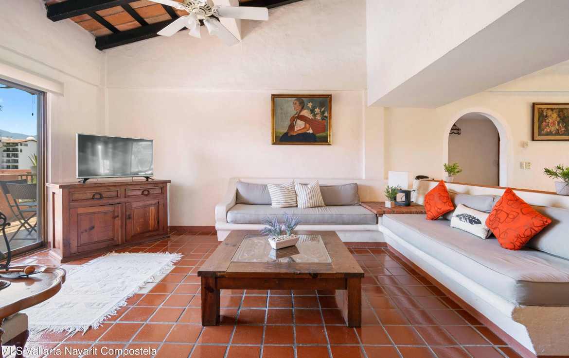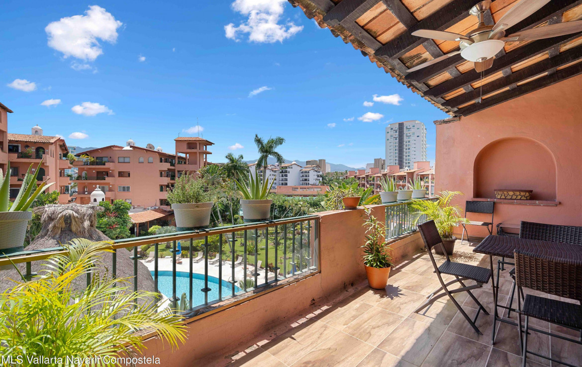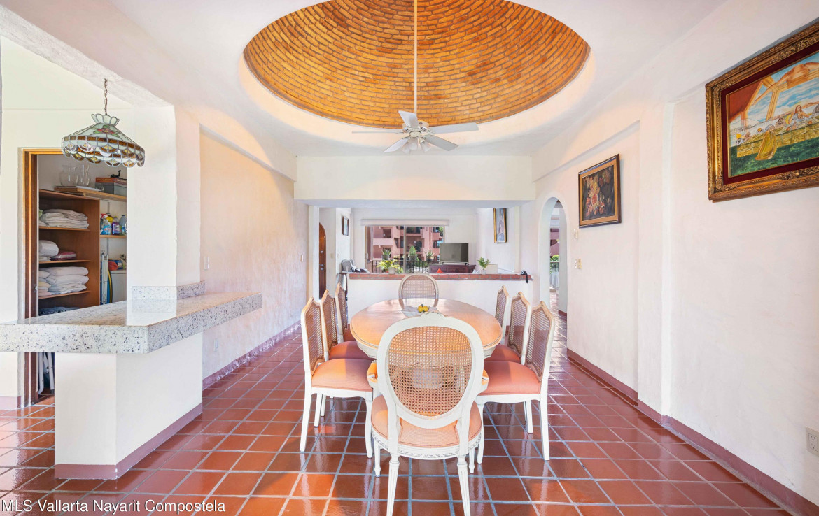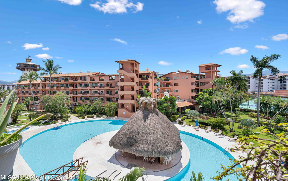 Vive o invierte en el paraiso!Descubre este hermoso departamento ubicado en el exclusivo condominio Club de Tenis Puesta del Sol, en el corazon de Marina Vallarta. Situado en el cuarto piso del Edificio 3, este amplio y luminoso espacio de 160 m ofrece todo lo que necesitas para disfrutar del confort, la tranquilidad y el estilo de vida que mereces.🛏️ 2 recamaras | 🛁 2 banos completos | 🧺 Cuarto de lavado independiente🛋️ Totalmente amueblado | 🐾 Pet friendlyDisfruta de una encantadora cupula artesanal, una amplia sala que se conecta con el balcon con vista a las albercas y areas verdes, ideal para relajarte o convivir con amigos y familia.