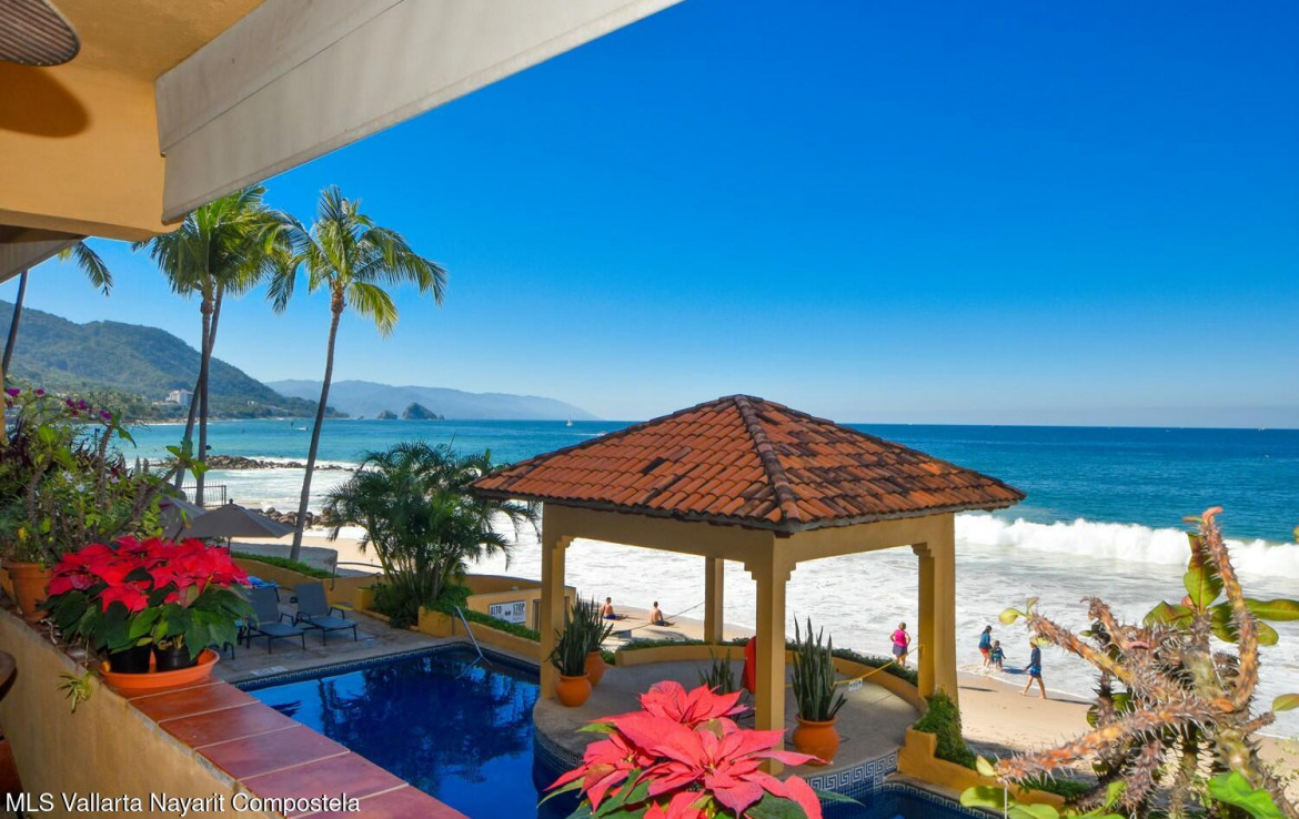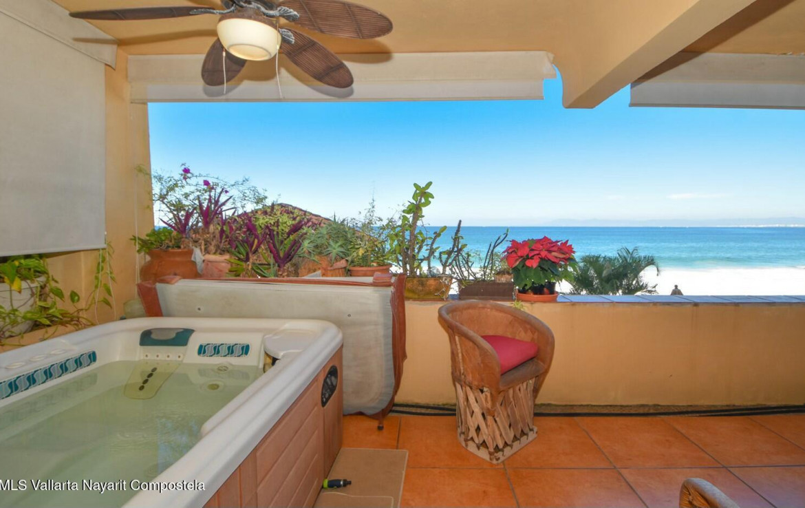 Un hallazgo poco comAn, frente al mar en una de las mejores ubicaciones de Vallarta, Punta Negra. Esta unidad cuenta con 2 recamaras, 2 banos completos, cocina gourmet, terraza con jacuzzi privado con vista a la alberca y la playa completan este predio.A rare find, beachfront in one of the best locations in Vallarta, Punta Negra. This 2 bedroom 2 bath unit, with gourmet kitchen, terrace with private jacuzzi over looking over the pool and beach make this property complete.