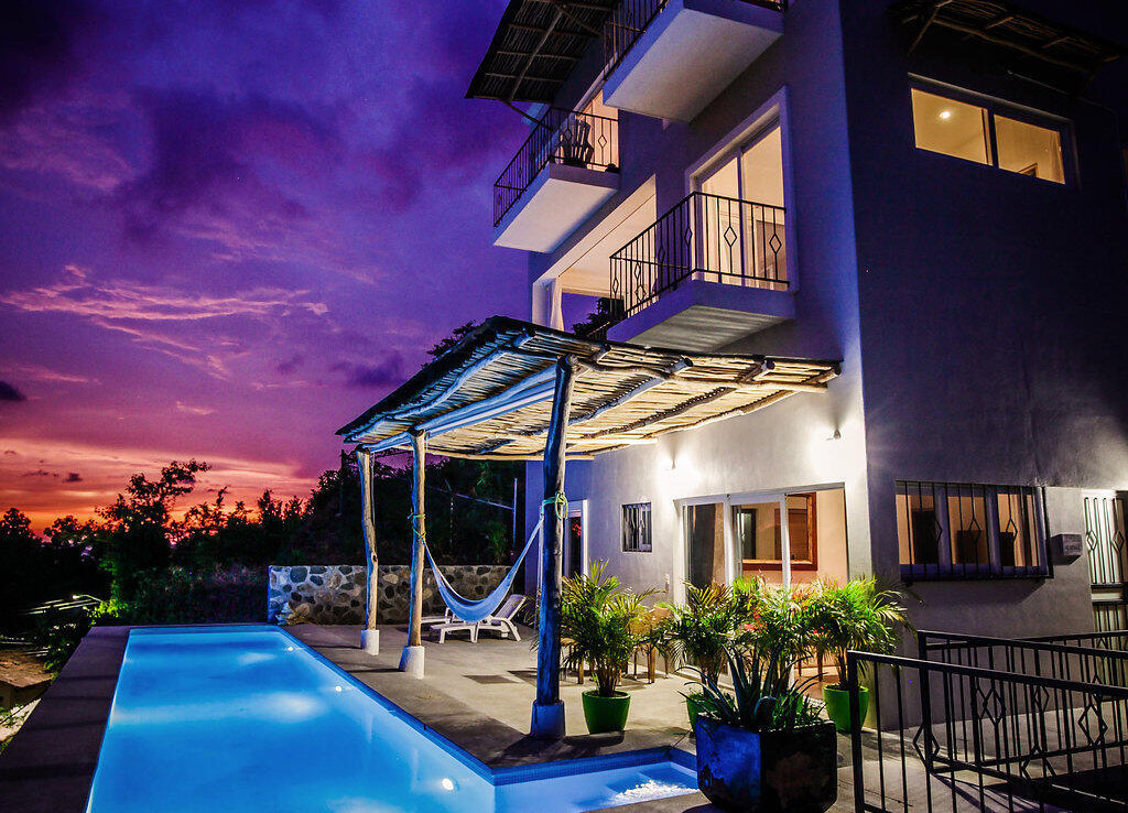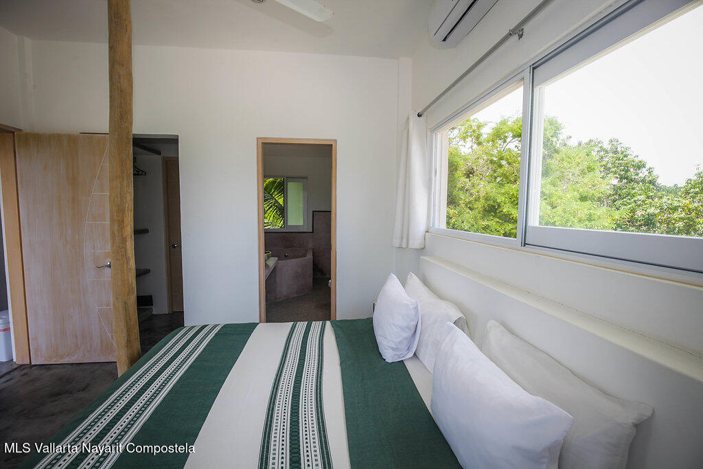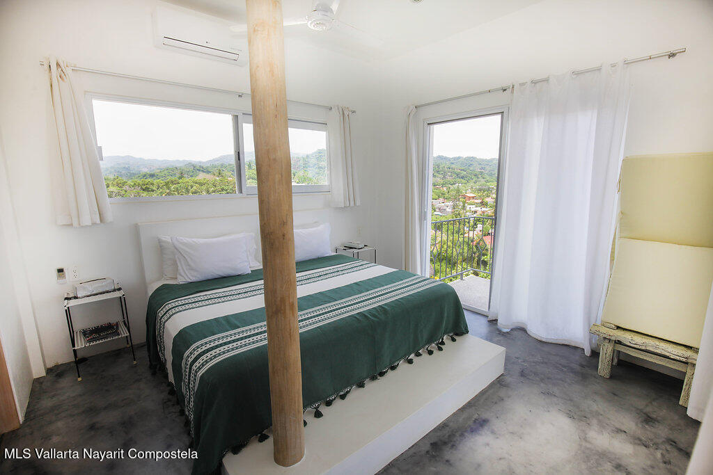On a quiet side street just two blocks from the main street in San Pancho sits a gathering of unique, contemporary condos. Punta San Pancho is built into one of the few hillsides in town opening up unparalleled ocean, town, jungle and mountain town views. An easy walk to the beach, it is extraordinary to have these kind of views within the downtown area.There are 3 finished condos available within the quaint complex with a shared lap pool, lush garden, superb infrastructure, beautiful landscaping, and ocean breezes. This small community is truly a rare find and won’t last long.Low HOA fees insure that the maintenance of the garden and pool areas are kept to the highest standard of quality.1 bedroom Apartment with full kitchen + full bathSize: 103 m2