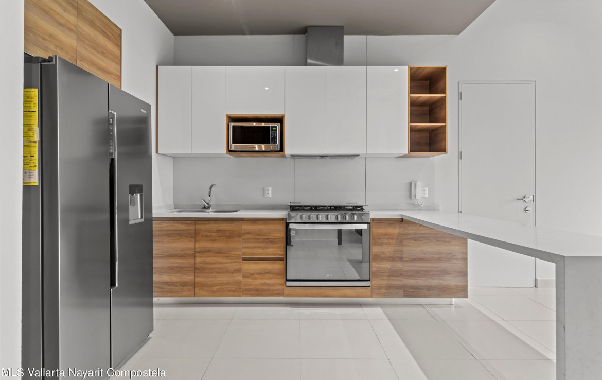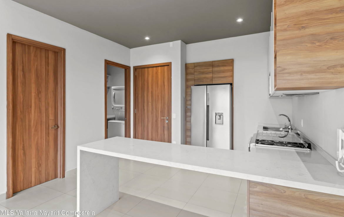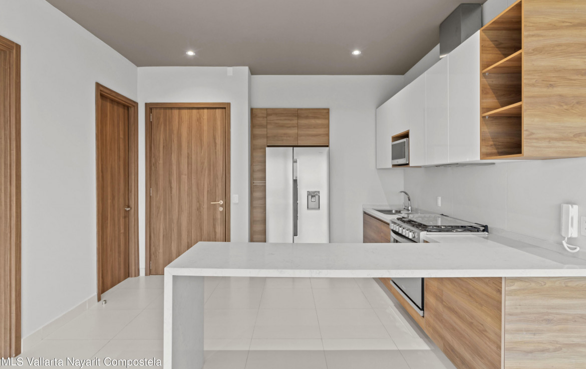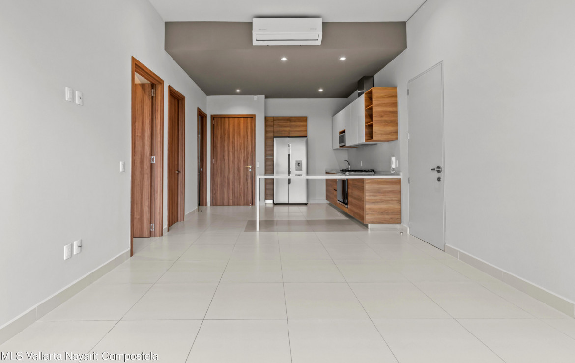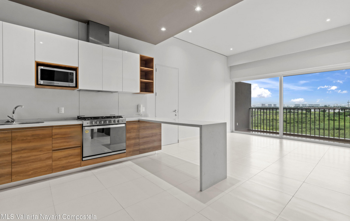 Punto Novo features two exquisite condominium towers on Boulevard Nuevo Vallarta, offering a vibrant commercial area and a modern business center. This impressive semi-furnished 1-bedroom, 1-bath unit is an architectural gem that seamlessly combines elegance and comfort. Designed by the renowned architect Ernesto del Castillo, it boasts a unique living space characterized by its contemporary design, luxurious finishes, and meticulous attention to detail. Residents can enjoy exceptional amenities, including a rooftop pool, a kids’ club, and underground parking. With high-quality construction and a thoughtful layout, this unit is a perfect retreat for those seeking both sophistication and tranquility in a prime location.