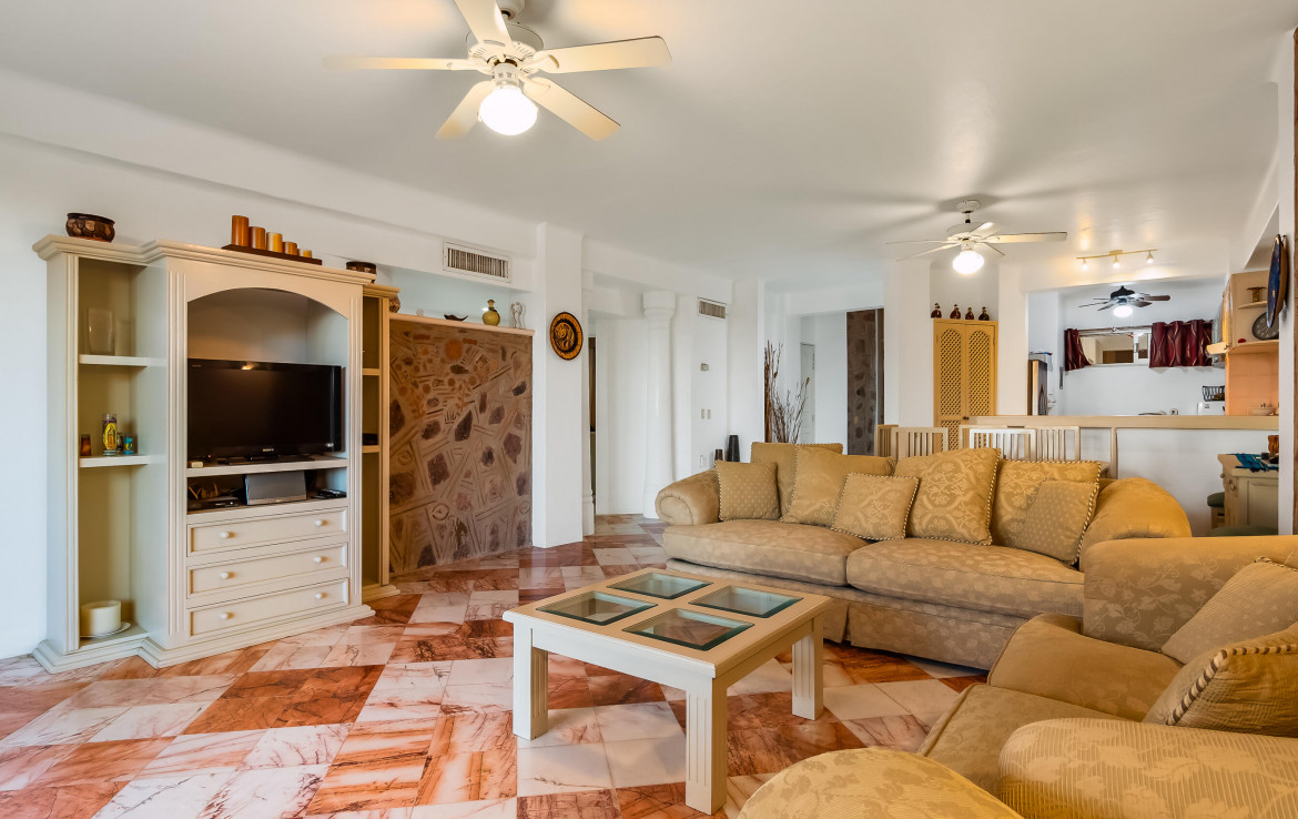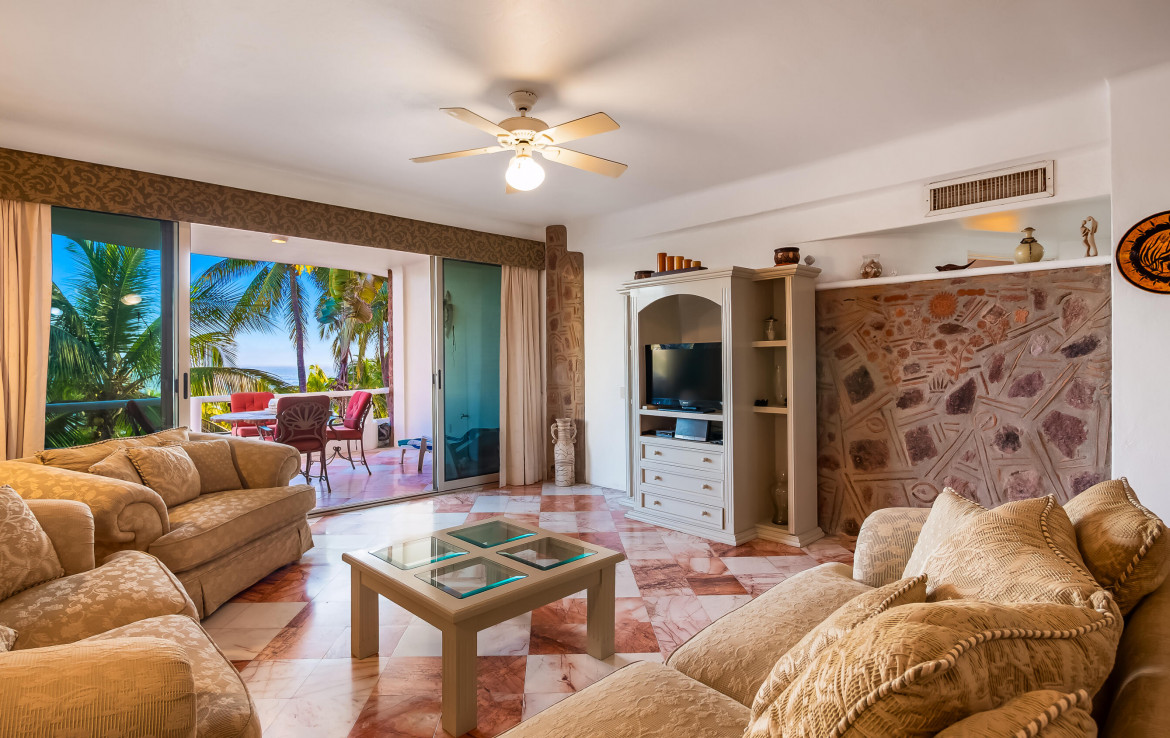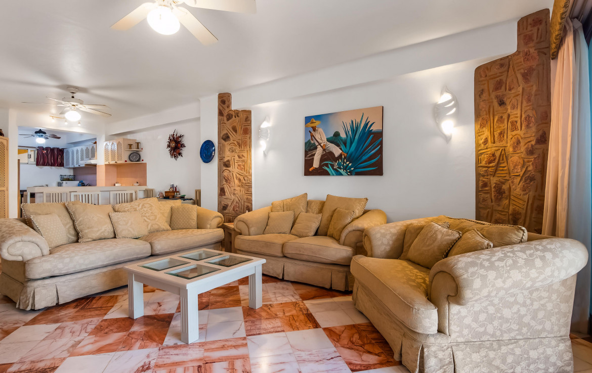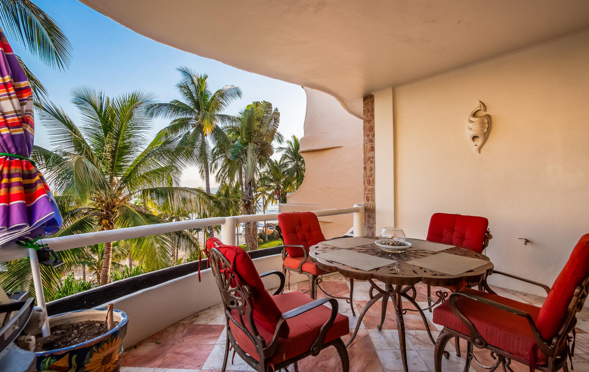 La mejor opcion en cuanto a valor por un condominio de 2 recamaras frente al mar en la zona! Nuevos aires acondicionados mini split. Arquitectura espanola con piedra y hermosas curvas, pisos de marmol. Banos renovados y pisos nivelados desde la entrada para facilitar el acceso en silla de ruedas. Totalmente amueblado. Hermosa alberca, area de cocina/bar al aire libre, banos. No se permiten mascotas. Se permiten rentas. Amplio espacio para estacionamiento (por orden de llegada). Ubicado en la playa mas bonita de la Bahia de Banderas, en una zona segura y hermosa, con excelentes senderos para caminar y restaurantes cercanos. Minutos en coche de las tiendas, a 20 minutos del aeropuerto de Vallarta. Contacto hoy!
