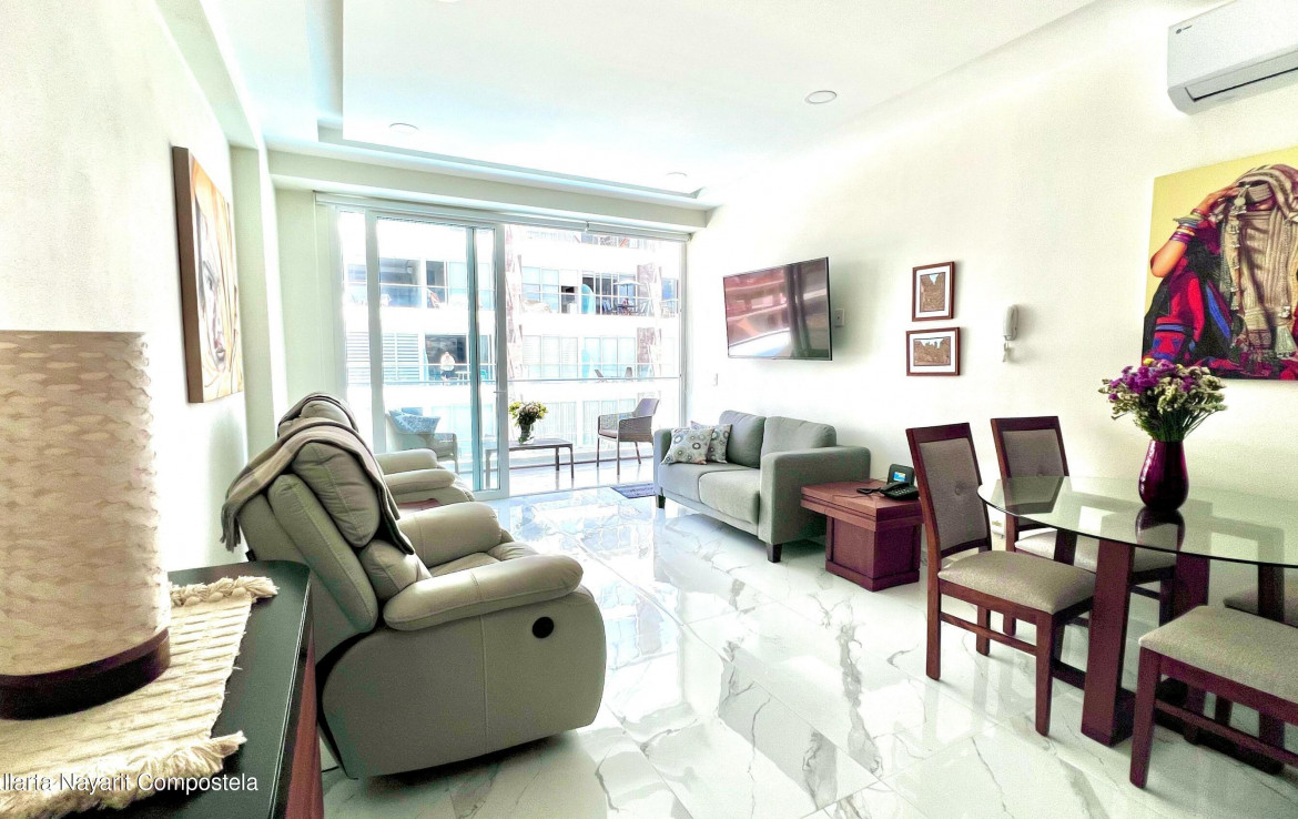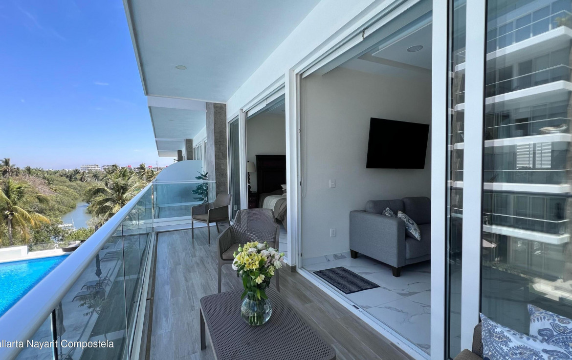 Este hermoso departamento de 2 recamaras (105 m) en el tercer nivel de Quinta San Miguel Ocean & Canal te ofrece la combinacion perfecta de confort, estilo y una ubicacion inigualable.Disfruta de vistas espectaculares, brisa marina y un diseno que aprovecha cada rincon para darte amplitud y luz natural. Perfecto para quienes buscan un hogar para vivir todo el ano o una excelente inversion en una de las zonas con mayor plusvalia de la Riviera Nayarit.