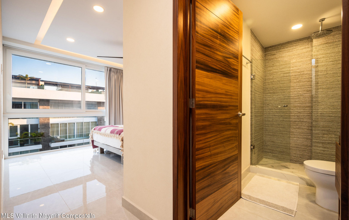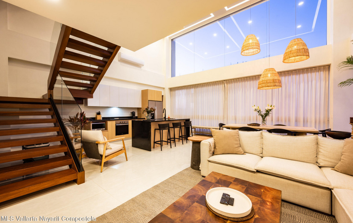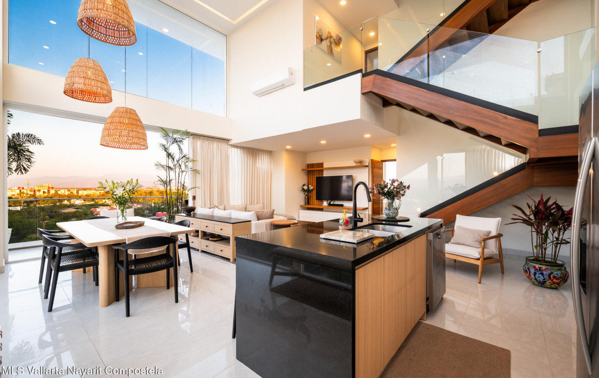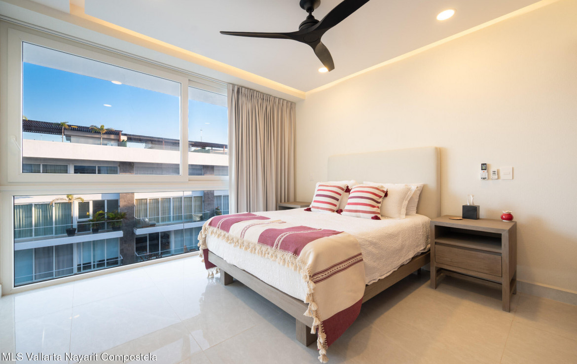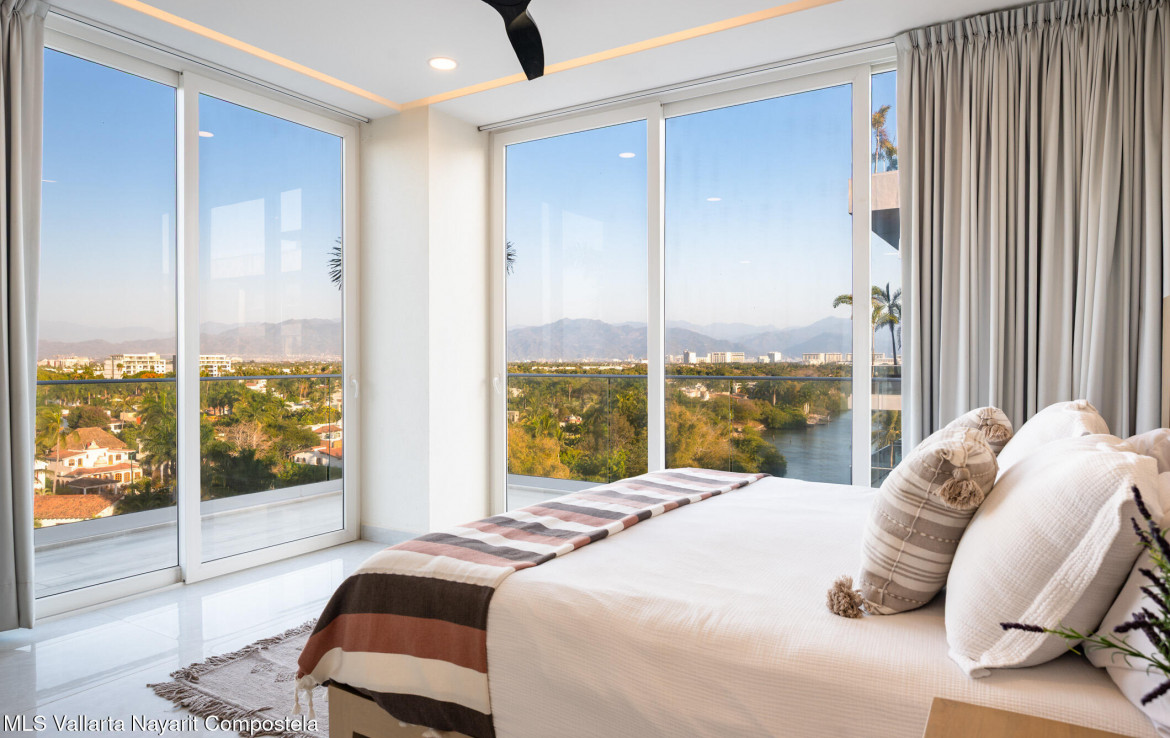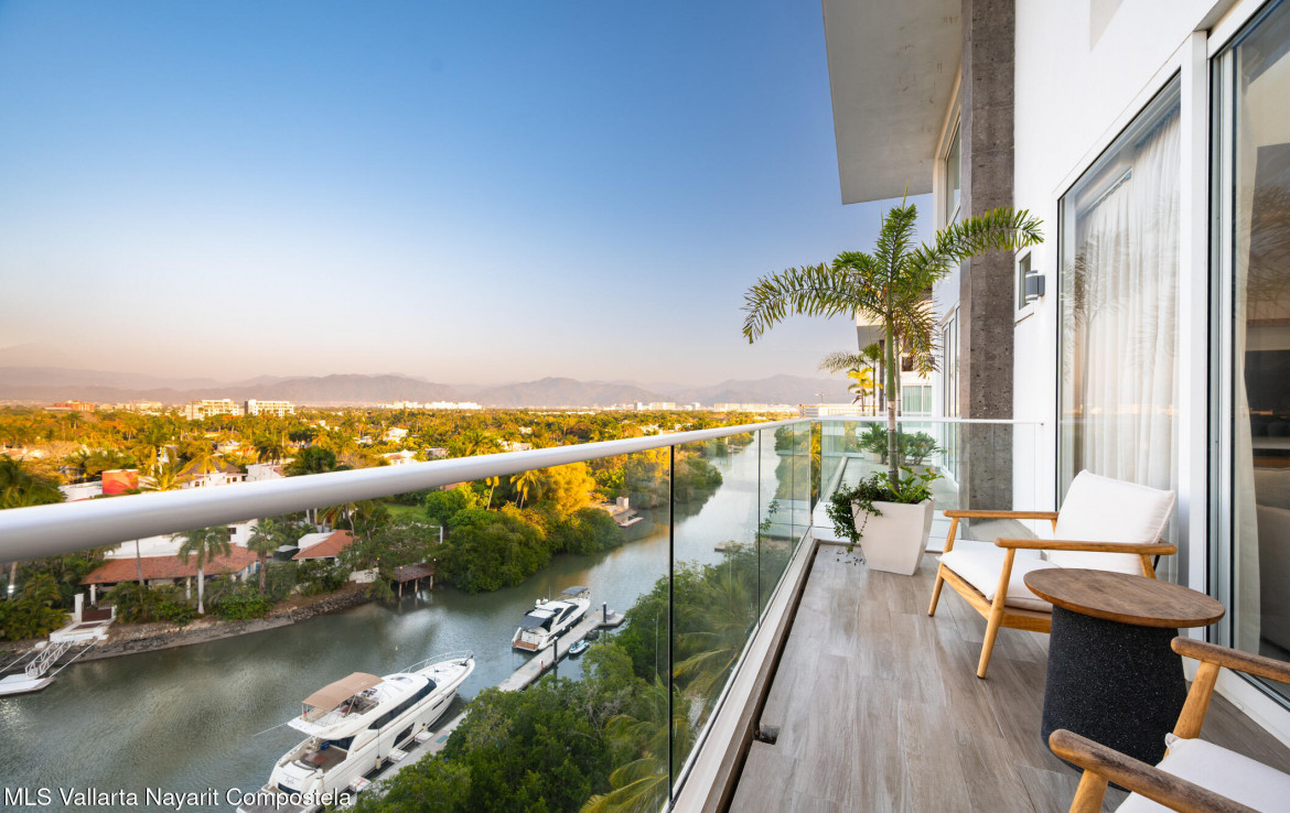 Best location in Nuevo Vallarta! Spectacular 3-bedroom, 4.5-bath Penthouse, decorated in an elegant modern style with canal view from every window. The unit has several upgrades, wooden floating stairs to the private rooftop deck with a spacious jacuzzi for 8 people, here you can enjoy a partial view to the ocean Quinta San Miguel Canal offers different amenities, Padel court, Heated swimming pool, Gym, 24-7 security, Elevator, and exclusive Canal docks. La mejor ubicacion en Nuevo Vallarta! Espectacular Penthouse de 3 recamaras y 4.5 banos, decorado con estilo moderno con vistas al canal desde cada ventana. Terraza privada en la azotea con jacuzzi para 8 personas, vista parcial al mar. Quinta San Miguel Canal ofrece diferentes amenidades Tipo de cambio para precio en pesos de $19.