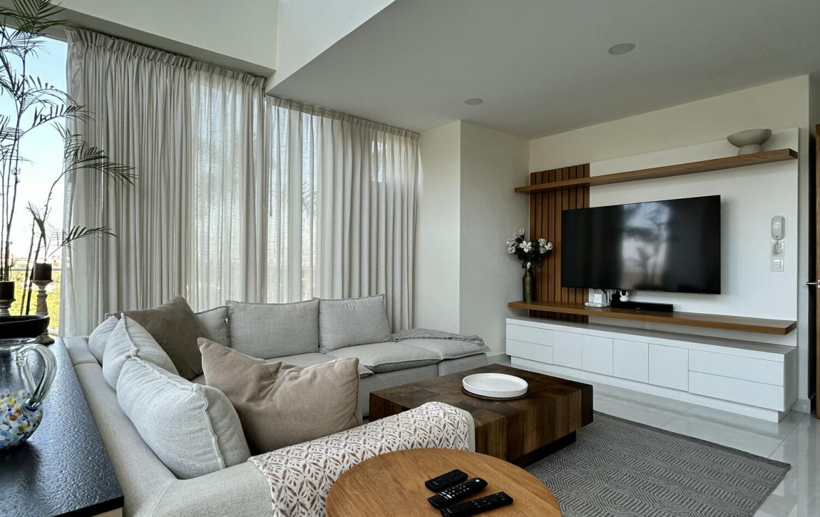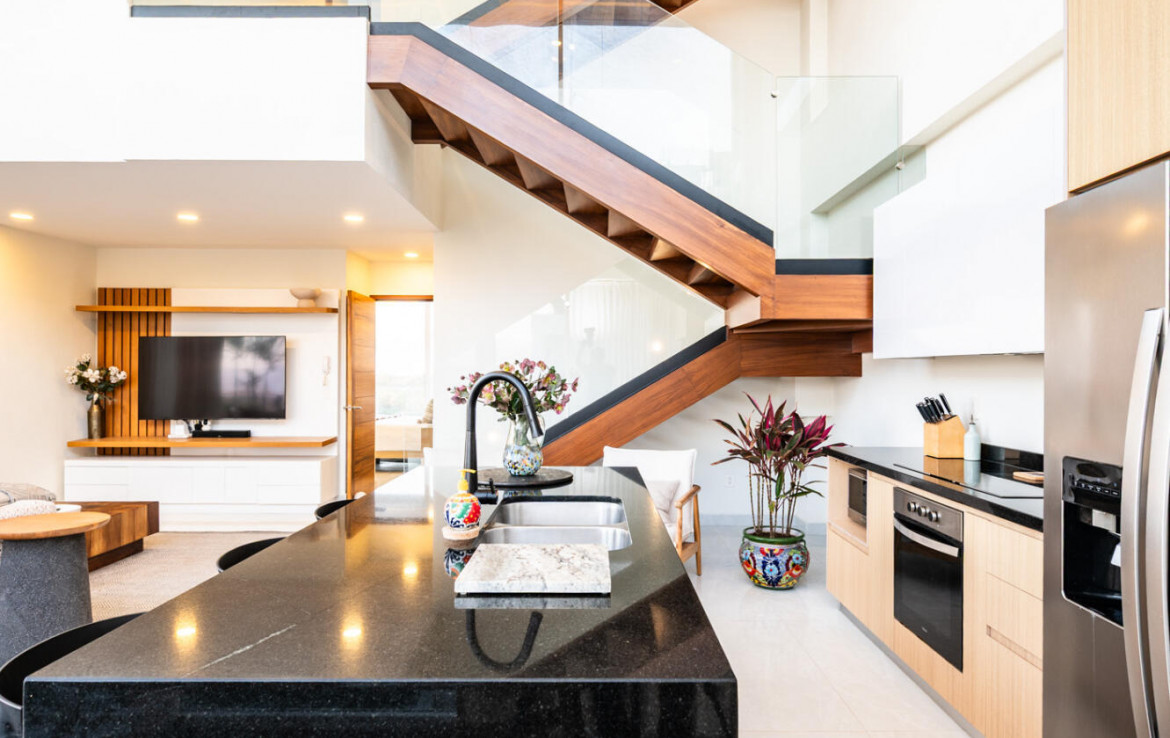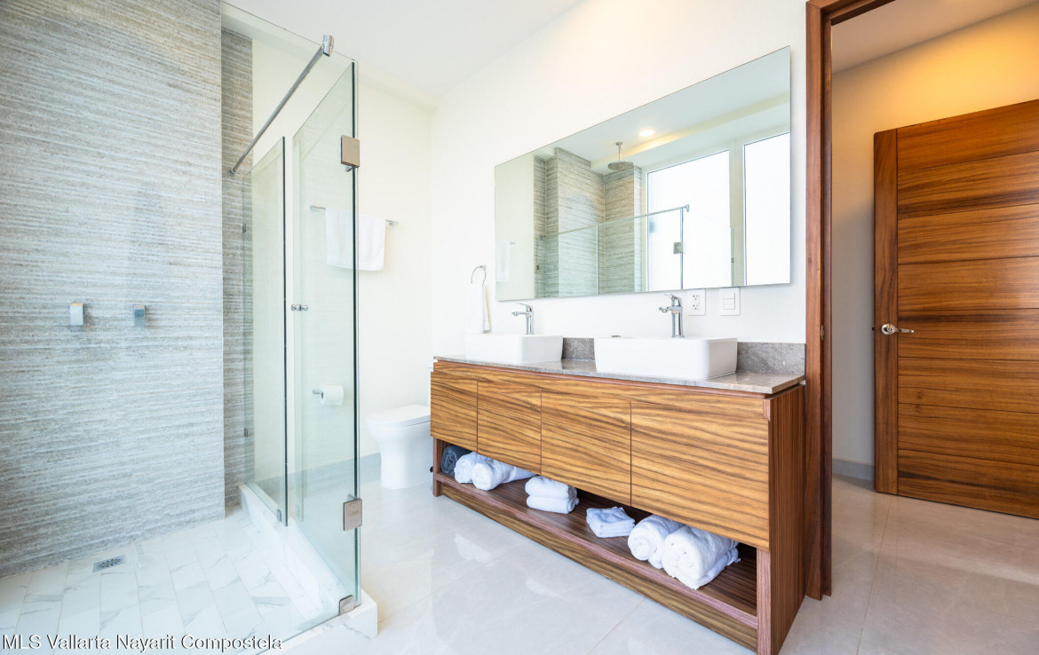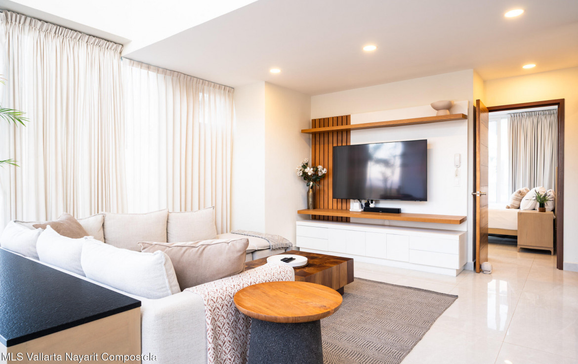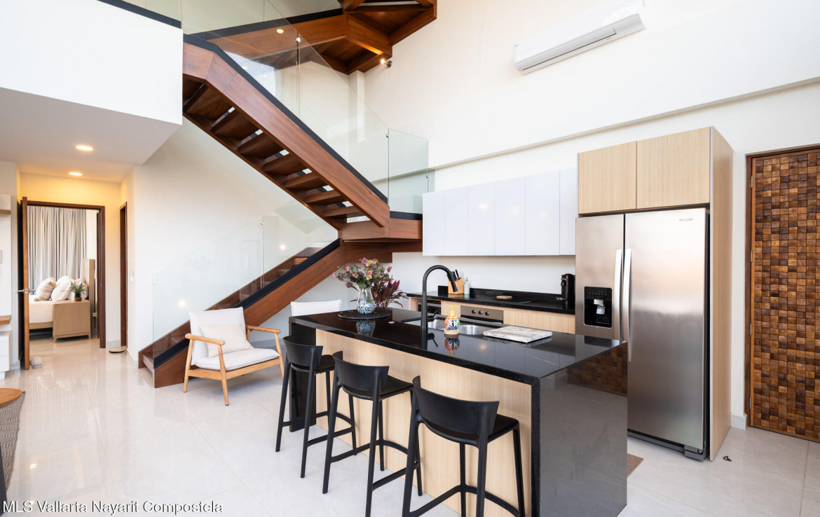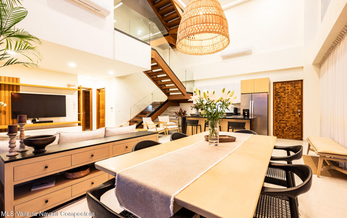 Best location in Nuevo Vallarta! Spectacular 3-bedroom, 4.5-bath Penthouse, decorated in an elegant modern style with canal view from every window. The unit has several upgrades, wooden floating stairs to the private rooftop deck with a spacious jacuzzi for 8 people, here you can enjoy a partial view to the ocean Quinta San Miguel Canal offers different amenities, Padel court, Heated swimming pool, Gym, 24-7 security, Elevator, and exclusive Canal docks. La mejor ubicacion en Nuevo Vallarta! Espectacular Penthouse de 3 recamaras y 4.5 banos, decorado con estilo moderno con vistas al canal desde cada ventana. Terraza privada en la azotea con jacuzzi para 8 personas, vista parcial al mar. Quinta San Miguel Canal ofrece diferentes amenidades Tipo de cambio para precio en pesos de $19.