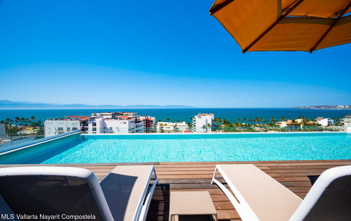 Beautiful New building, ready to move in, located in the Zona Dorada of picturesque Bucerias, only 2 blocks from the beautiful swimmable beach and walking distance to many restaurants, shopping and art galleries. This corner unit is very spacious, with beautiful natural light and ventilation, featuring Italian kitchens and includes refrigerator, dishwasher, cooktop, oven and microwave. An underground parking and storage locker are also included. Roof top amenities have spectacular views to the ocean and the whole bay, enjoy the Infinity salt water heated pool, Gym and BBQ area. Official prices are in dollars.