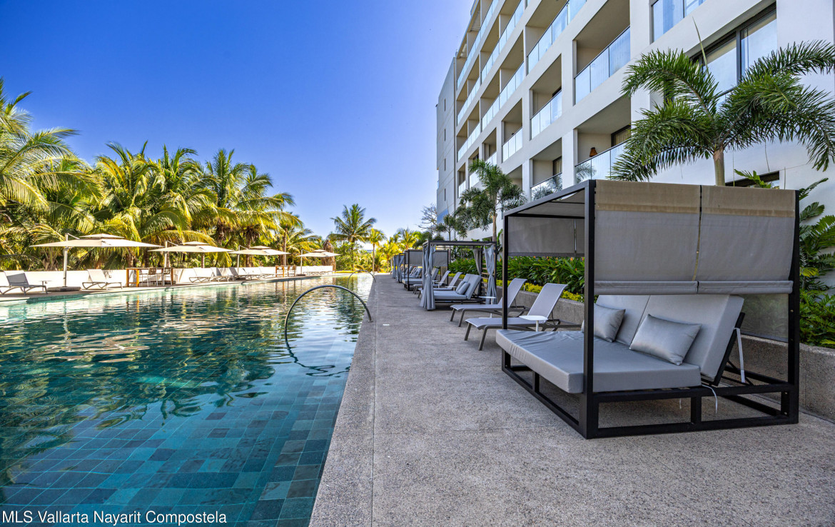 Residence by Mio combina lo mejor de dos mundos, esta unidad tipo estudio con cocineta te permite gozar de la vida en la playa de acuerdo con tu ritmo, pero si quieres mas, el Hotel mio te ofrece la opcion de, day pass , restaurante con cargo, room service y acceso a todo el roof top, aunque te garantizo que con la alberca de condominios tienes mas que suficiente. En una de las mejores ubicaciones de Nuevo y sobre un canal que te relajara desde tu llegada. ///Residence by Mio combines the best of both worlds. This studio unit with a kitchenette lets you enjoy beach life at your own pace, but if you want more, Hotel Mio offers day passes, a restaurant (for a fee), room service, and access to the entire rooftop. Although I guarantee the condominium pool will be more than enough