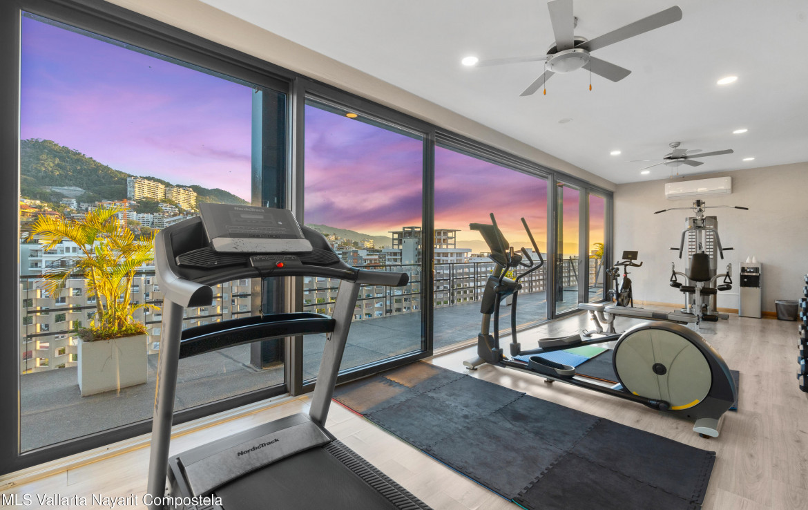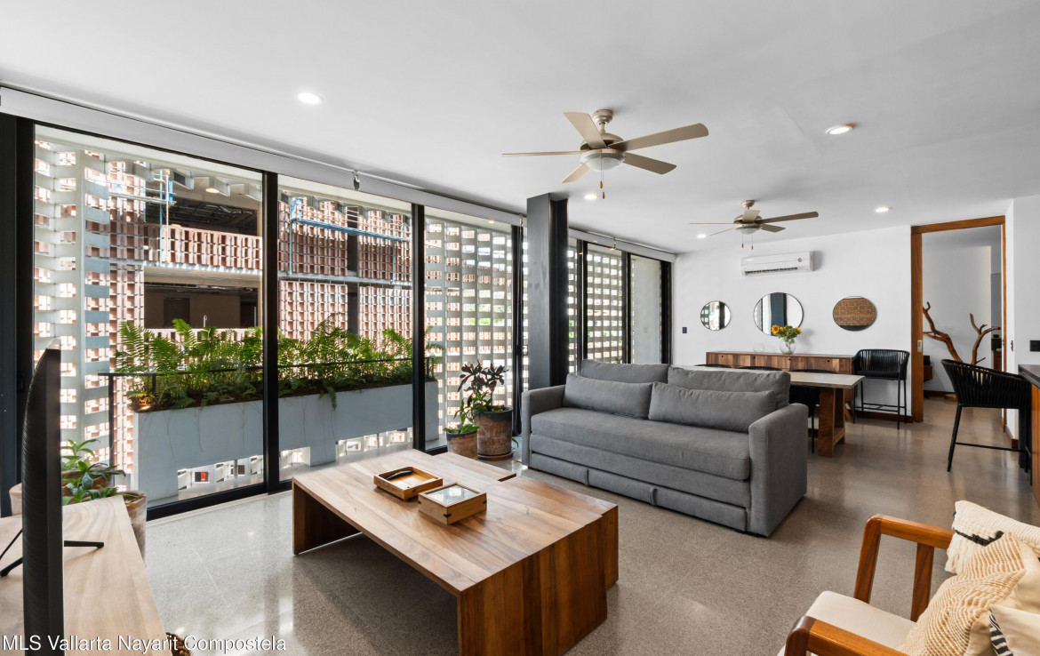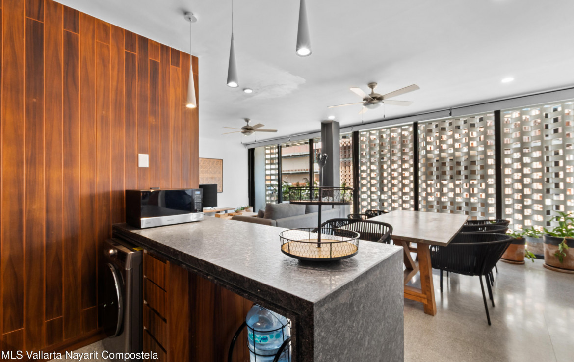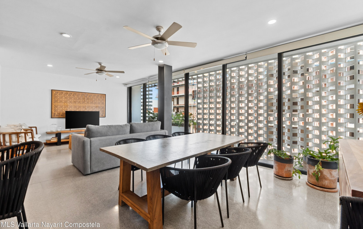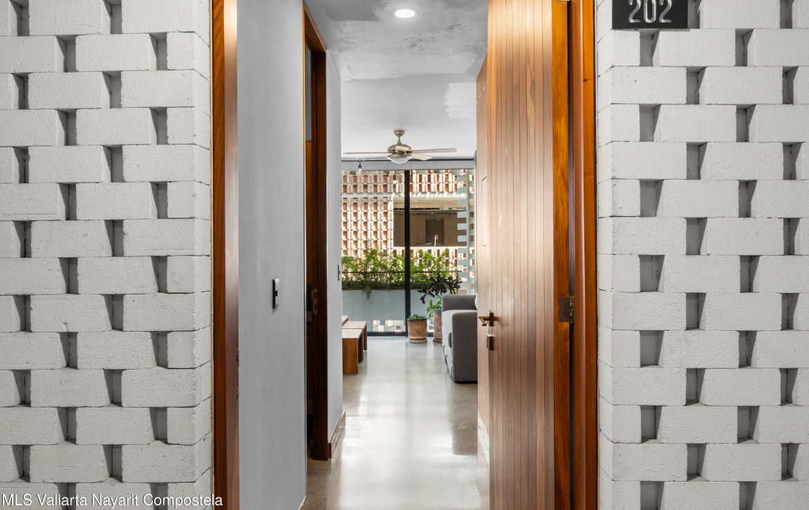 Ubicado a tres calles de la playa Los Muertos y una del rio Cuale, RINCON DE ALMAS esta en el corazon de la vibrante Zona Romantica de Puerto Vallarta. El edificio fue disenado por dos de los arquitectos mas experimentados y creativos de Mexico: Derek Dellekamp y Frida Escobedo. Su unico diseno de celosia perimetral, realizado con analisis bioclimatico, permite la entrada de luz natural y el flujo de aire fresco del rio, al tiempo que mantiene la privacidad de todas las unidades. Acabados de concreto, metal y ceramica en todo el edificio. Esta unidad es una pieza de arte unica donde tus sentidos cobran vida. Increibles vistas de 360 grados desde su terraza al aire libre con piscina semiolimpica, gimnasio, area de descanso y BBQ. Estacionamiento y bodega subterraneos.