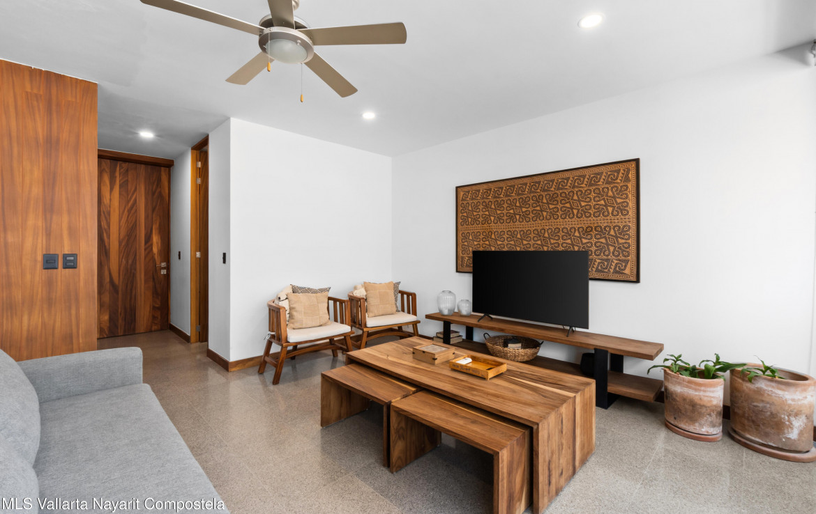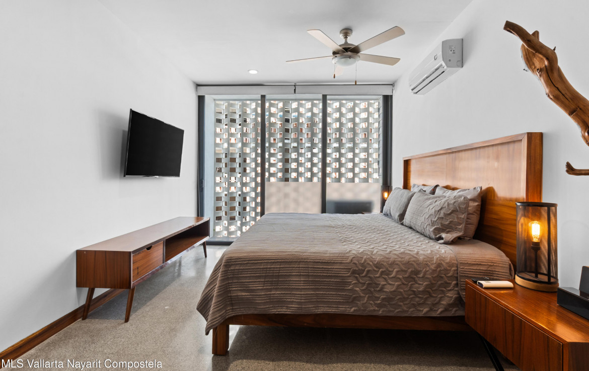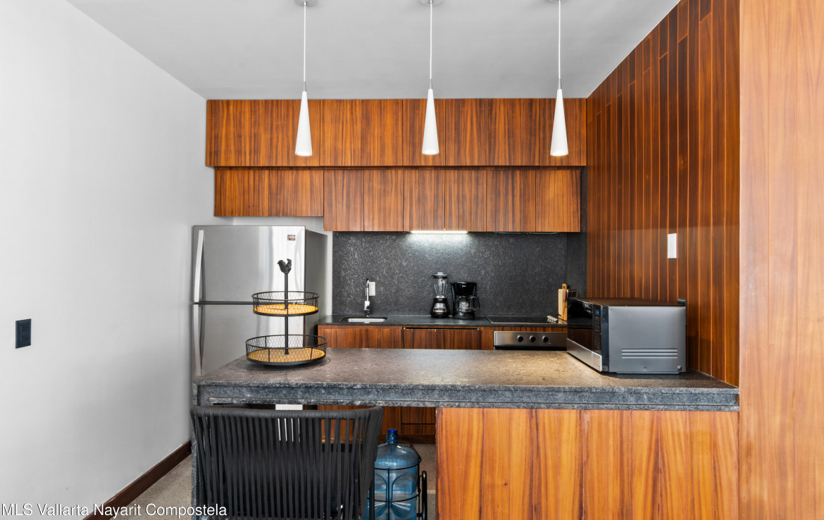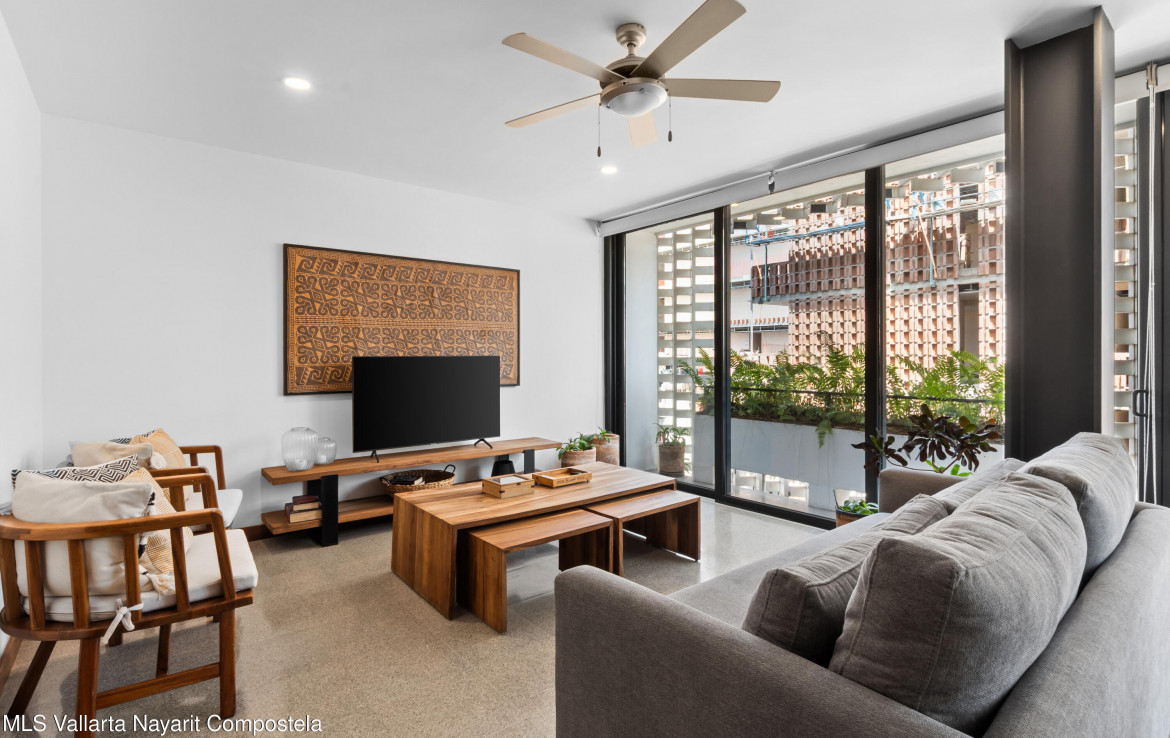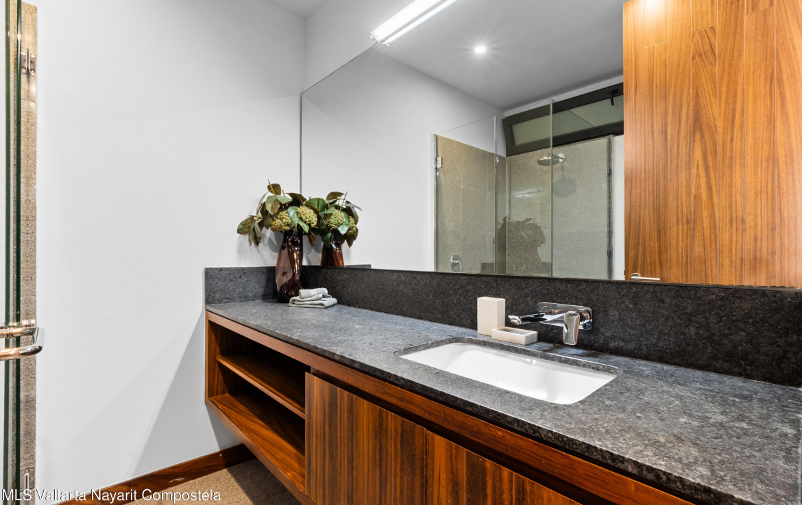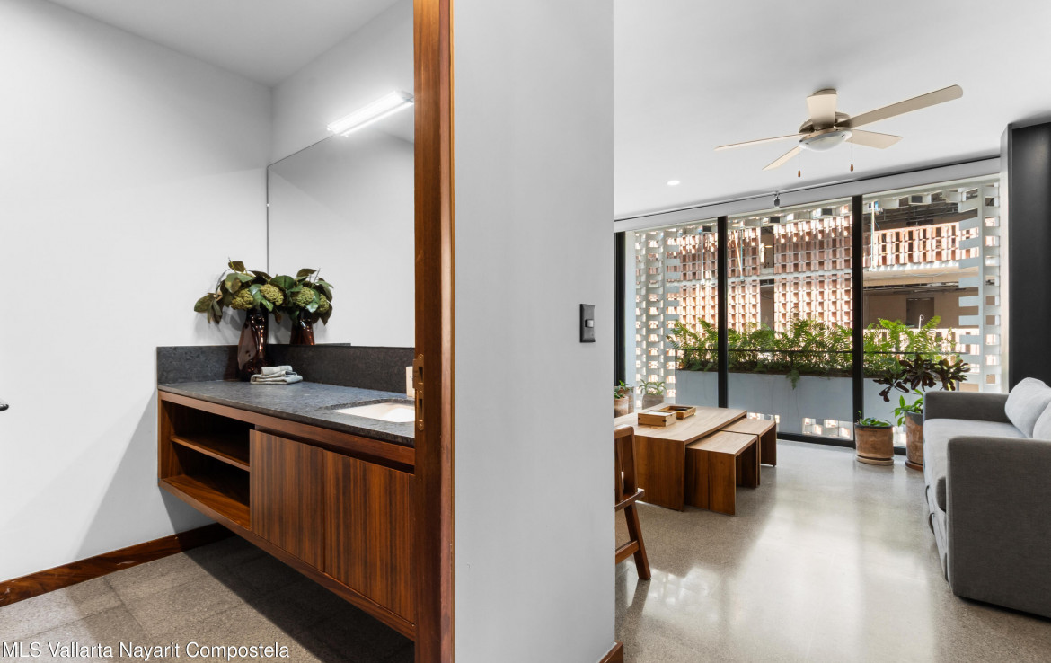 Ubicado a tres calles de la playa Los Muertos y una del rio Cuale, RINCON DE ALMAS esta en el corazon de la vibrante Zona Romantica de Puerto Vallarta. El edificio fue disenado por dos de los arquitectos mas experimentados y creativos de Mexico: Derek Dellekamp y Frida Escobedo. Su unico diseno de celosia perimetral, realizado con analisis bioclimatico, permite la entrada de luz natural y el flujo de aire fresco del rio, al tiempo que mantiene la privacidad de todas las unidades. Acabados de concreto, metal y ceramica en todo el edificio. Esta unidad es una pieza de arte unica donde tus sentidos cobran vida. Increibles vistas de 360 grados desde su terraza al aire libre con piscina semiolimpica, gimnasio, area de descanso y BBQ. Estacionamiento y bodega subterraneos.