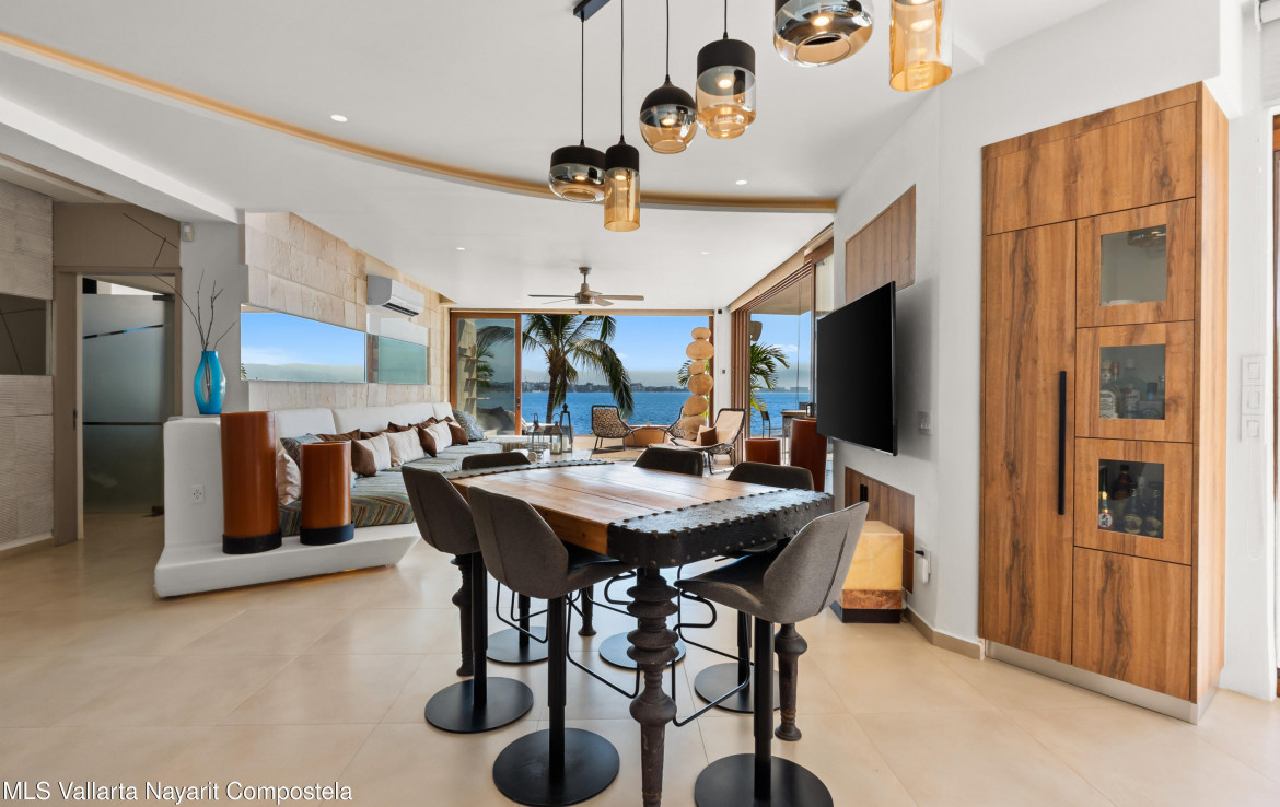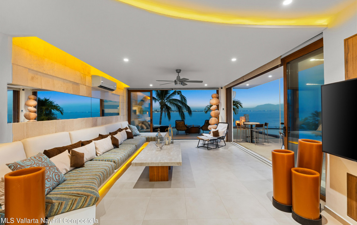 Risco 1 is a rare front-row oceanfront villa within the gated Punta Esmeralda community in La Cruz de Huanacaxtle. This single-level residence offers approximately 6,500 sq ft (605 m) of living space with four bedrooms and four and a half baths. Designed for seamless indoor-outdoor living, the home opens to an expansive private pool terrace directly overlooking the crystal-clear waters of the northern Banderas Bay, where mornings begin with ocean breezes and gentle surf. Generous living and dining areas, well-proportioned bedrooms, and a thoughtful layout provide comfort and privacy throughout. Punta Esmeralda is perfect for multigenerational enjoyment with resort-style amenities including multiple pools, beachfront restaurant, spa, fitness center, tennis courts, and 24-hour security.