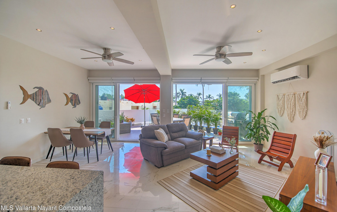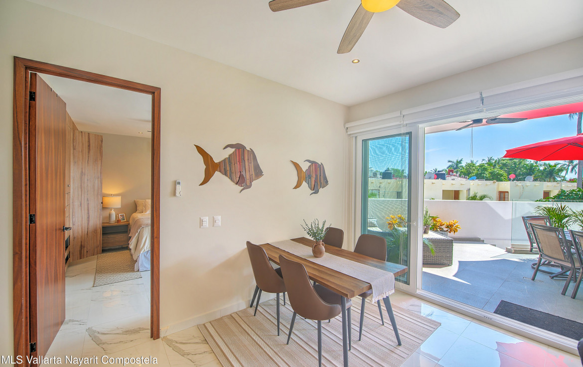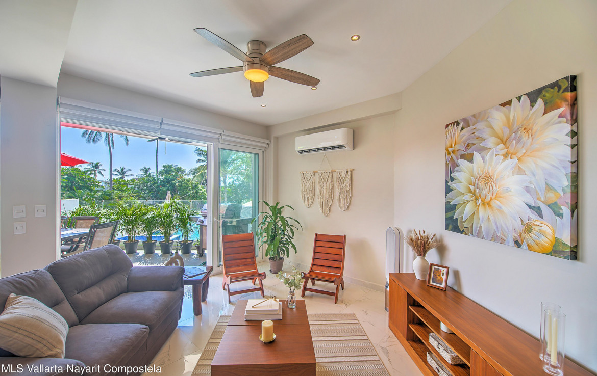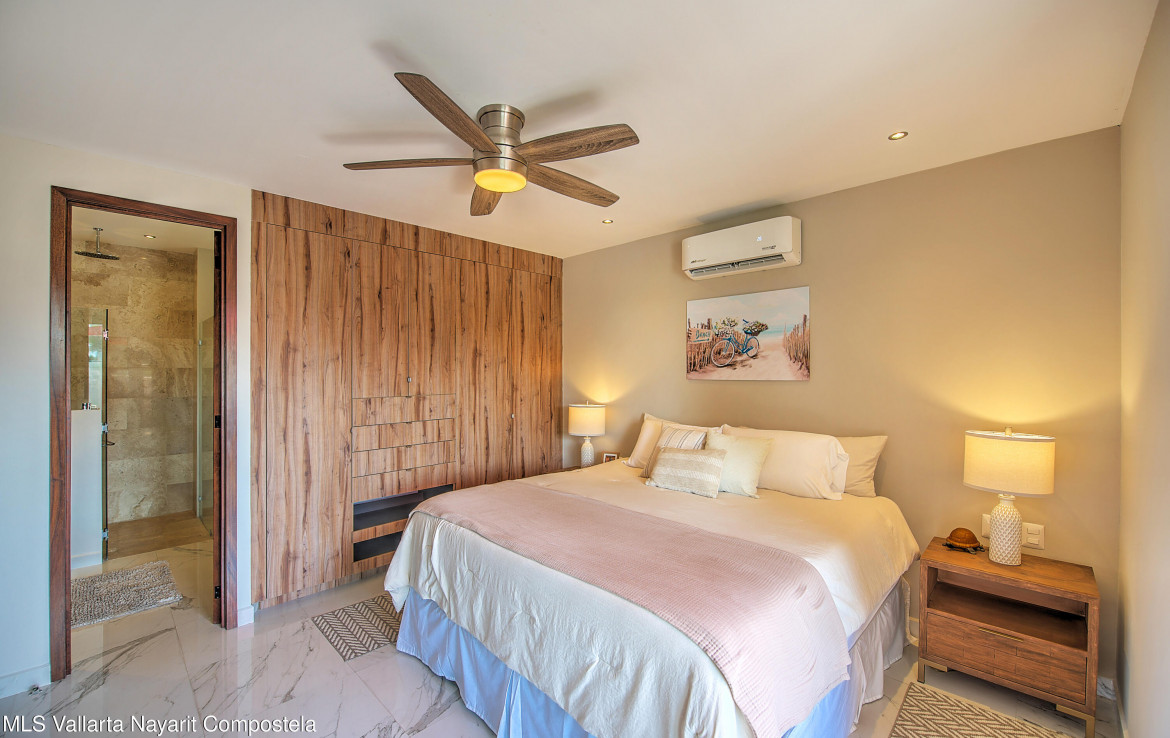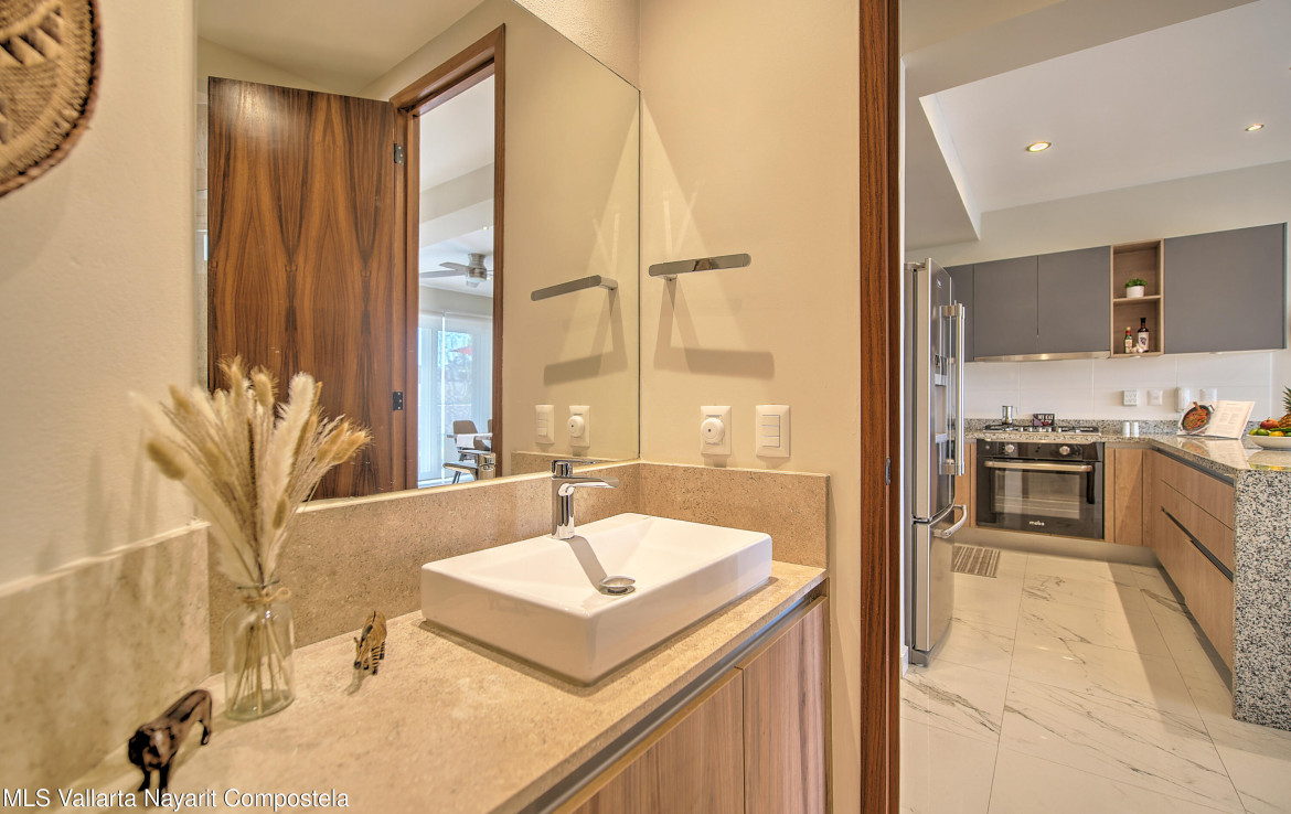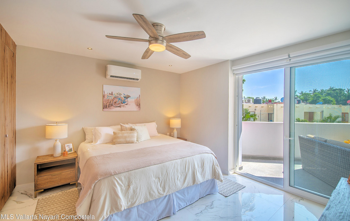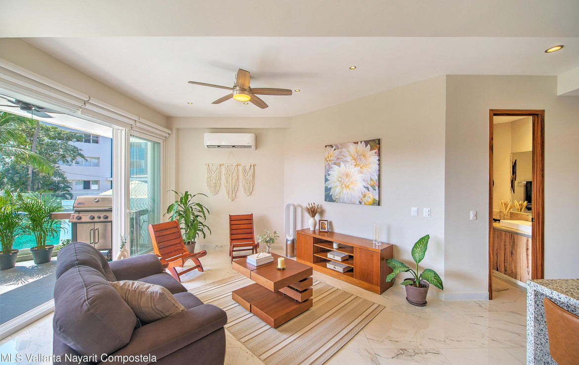 Sabbia 103Welcome to Sabbia 103–a bright and spacious one-bedroom, two-full bath condo just steps from the beach in sunny Bucerias. Designed for comfort and easy coastal living, this turnkey home features a unique layout and a large terrace perfect for enjoying your morning coffee or evening barbecues. Also delight in peak ocean views from the terrace and bedroom. The boutique building of just 18 total units offers a heated pool and a jacuzzi, both just right outside your door. Additionally, this condo has a deeded underground parking space and a private storage unit. With the beach only 70 steps away, Sabbia 103 offers the perfect blend of style, comfort, and seaside charm.