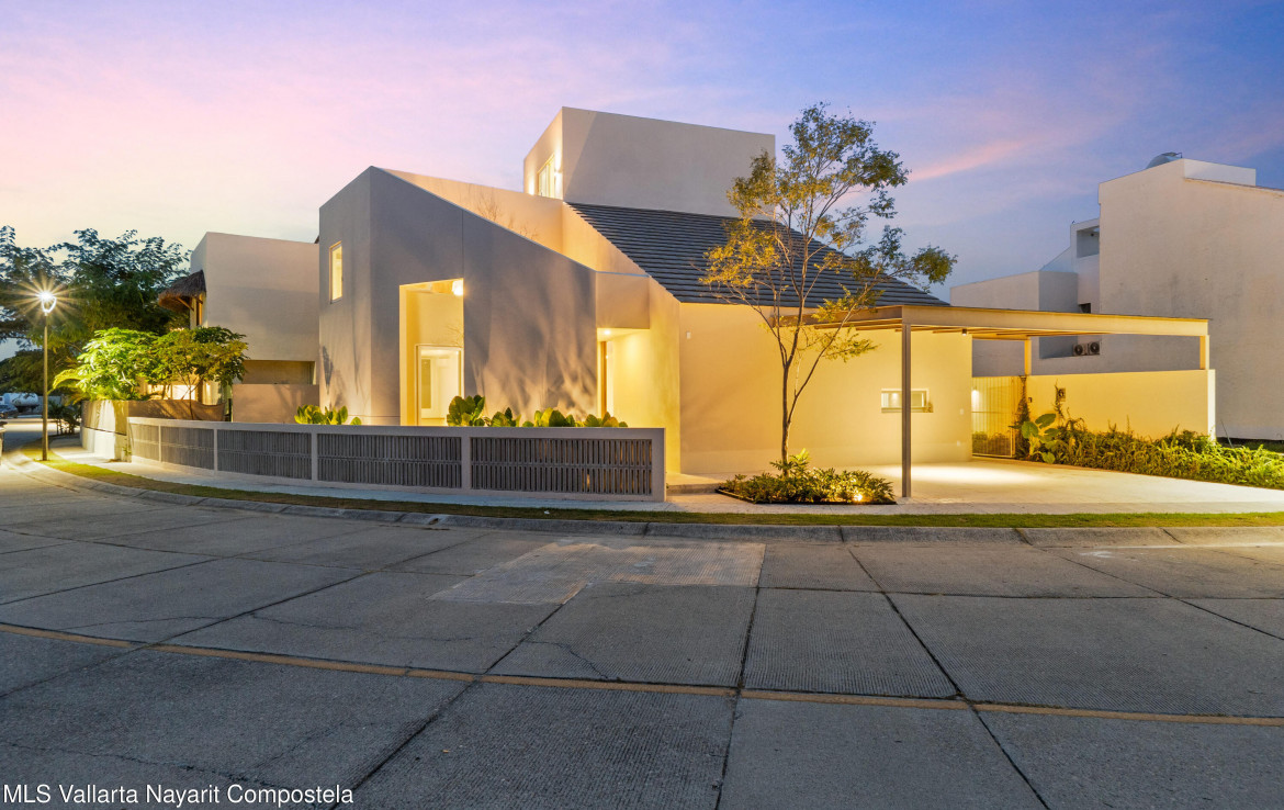 Residencia nueva en Flamingos Residencial, Bucerias. Una residencia dentro de uno de los fraccionamientos mas exclusivos de Bucerias. Esta casa a estrenar combina diseno arquitectonico distintivo, espacios amplios con doble altura y acabados en madera rosa morada de la mas alta calidad. Ubicada en Flamingos Residencial, un entorno seguro, tranquilo y de gran plusvalia. Esta propiedad ofrece 3 recamaras, 3 banos completos, 2 medios banos, estacionamiento techado para 2 autos y un area flex/multiusos en el tercer nivel con una plunge pool privada ideal para relajarse. El club del fraccionamiento brinda canchas de padel y de tenis. Precio en pesos: $10,990,000 MXN.