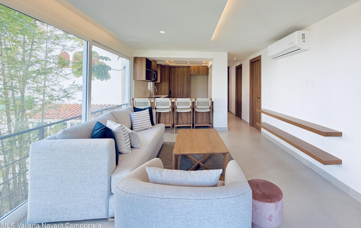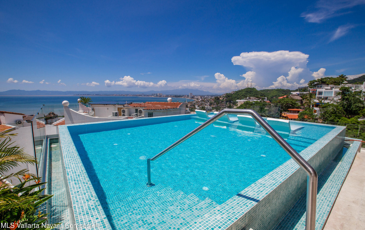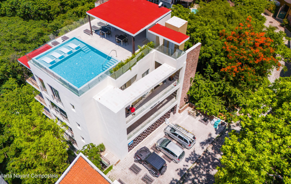 SEAVIEW Residences sits on the lush mountains in Amapas conveniently located, only 3 min to town driving ,12 min walking down through Hortensias and 7 min from Calle de la Igualdad which conveniently connects to the back of the building making it easy to move by foot or car, the style is modern while maintaining traditional elements through its design, it offers a beautiful rooftop with an infinity pool and a sunning area with panoramic views to the ocean and mountains, on the grounds will find a barbecue and sitting areas as well as a jacuzzi, SEAVIEW Residences, makes a great investment option as the building is located in on of the most desirable and profitable areas in the city.