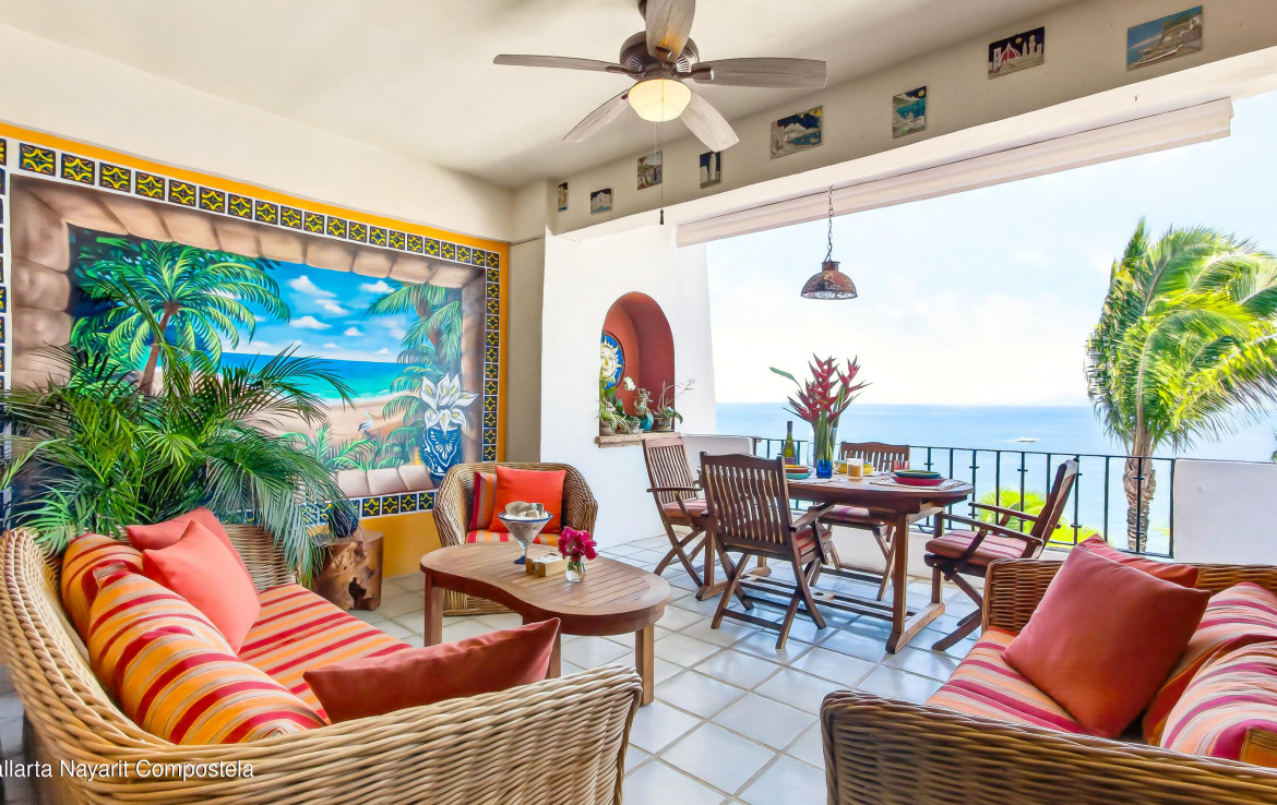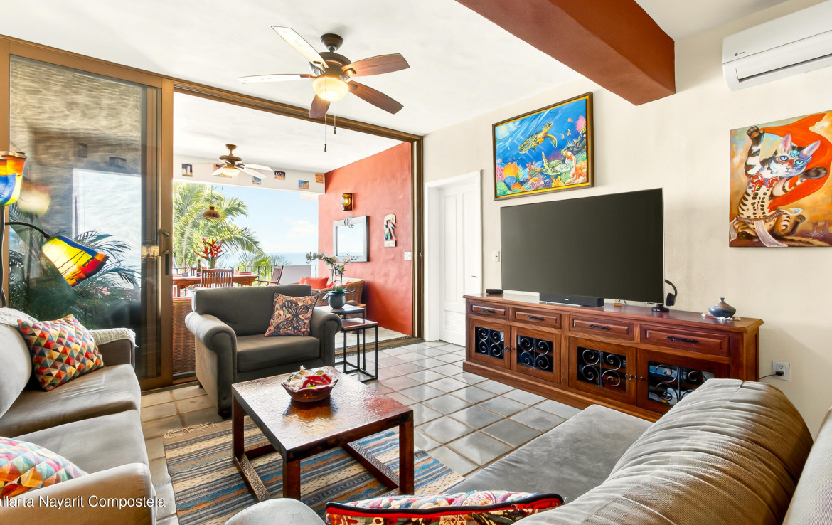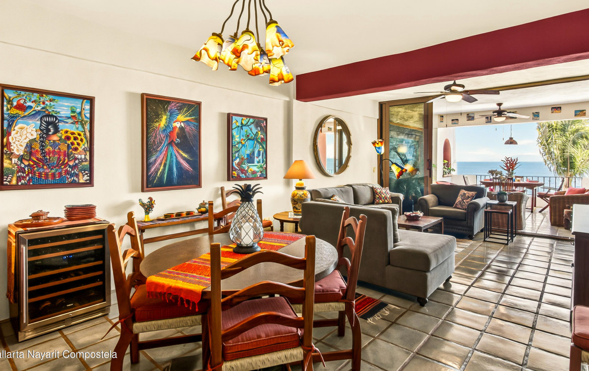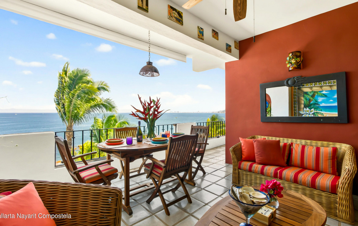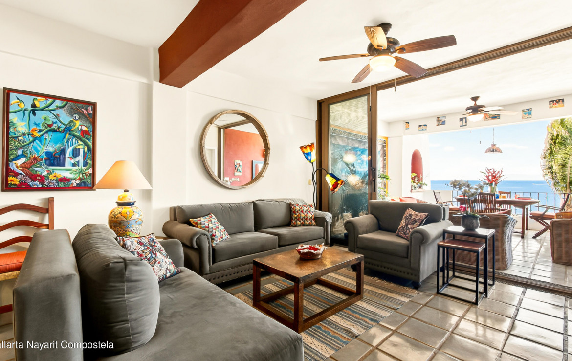 [english below] Este atractivo condominio frente al mar en Puerto Vallarta combina el encanto del estilo mexicano tradicional con una construccion solida de concreto que se ha mantenido en excelente estado en la zona sur de la ciudad. La propiedad ofrece 3 recamaras, junto con 2 banos completos, brindando comodidad y funcionalidad.Con una superficie de 169.20 m, el departamento dispone de amplias areas de sala y comedor, ideales tanto para el descanso como para la convivencia. Desde sus espacios se pueden disfrutar vistas al oceano y el relajante sonido de las olas, creando un ambiente unico.