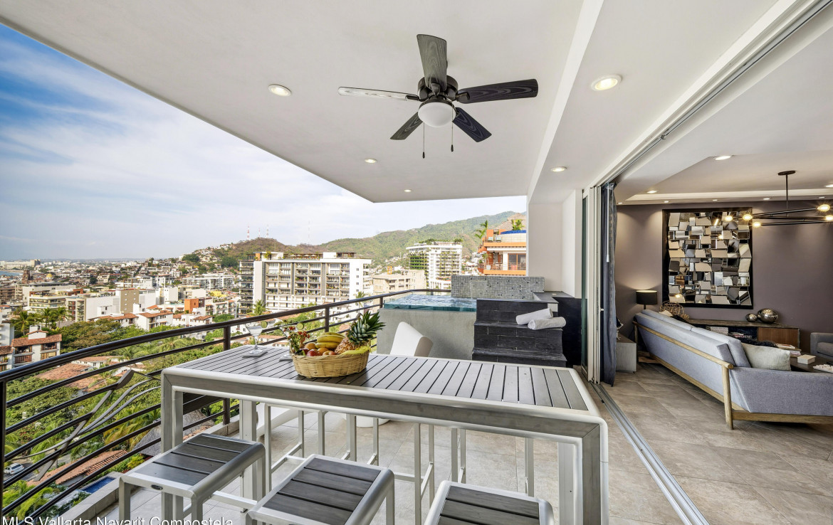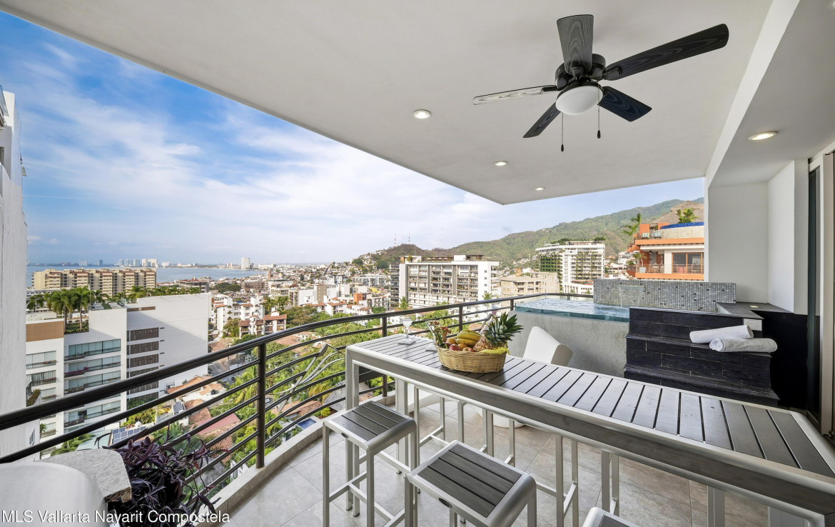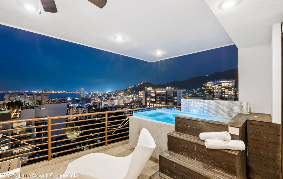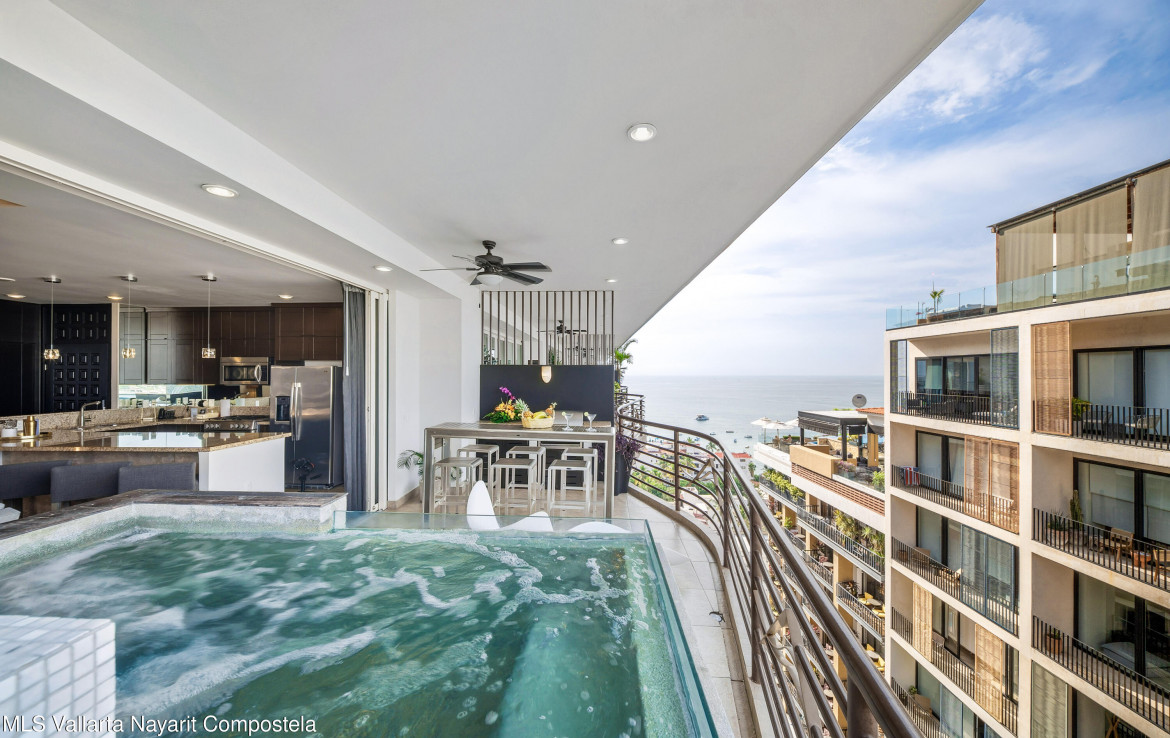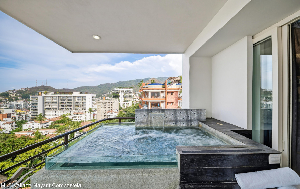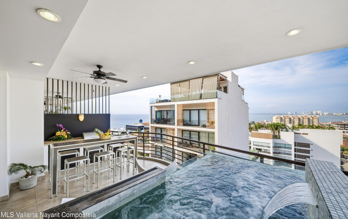 Abajo en espanol:Luxurious Living at the Andrew Christian Townhouse (Condo 601)Experience unparalleled luxury in this stunning two-bedroom residence at Pinnacle Signature 180. Exquisitely designed by renowned celebrity underwear designer Andrew Christian, this sophisticated retreat embodies the glamour, confidence, and elevated style associated with his iconic brand.Nestled in the heart of Puerto Vallarta’s vibrant Zona Romantica, this townhouse boasts a private heated plunge pool and sweeping panoramic views of Banderas Bay. Set on an elevated hillside–one of the few buildings in Old Town constructed on elevated terrain–it offers breathtaking, unobstructed vistas of the bay that are truly a rarity in this sought-after neighborhood, all while placing you mere steps away from …