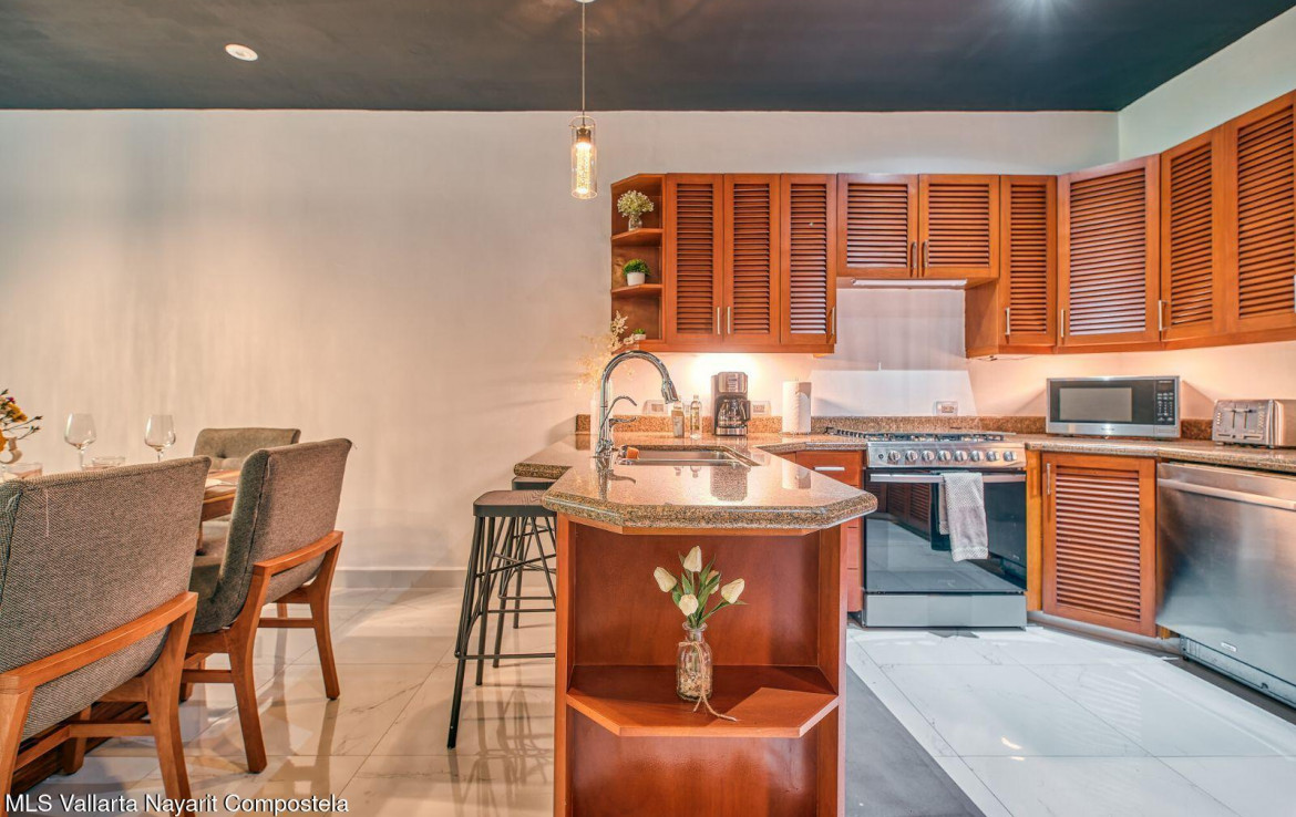 Experience turnkey elegance in this stylish condo in the heart of the Romantic Zone. Featuring a private entrance, a spacious outdoorterrace, a modern kitchen with granite countertops, contemporary finishes, and in-unit laundry, this home combines comfort and style. Residents enjoyaccess to a rooftop terrace with a BBQ area and breathtaking ocean, city, and mountain views. Nestled in the charming four-unit boutique buildingSonrisa del Naranjo in Alta Vista, this condo offers privacy, prime location, and just a 10-minute stroll to the vibrant Los Muertos Beach.