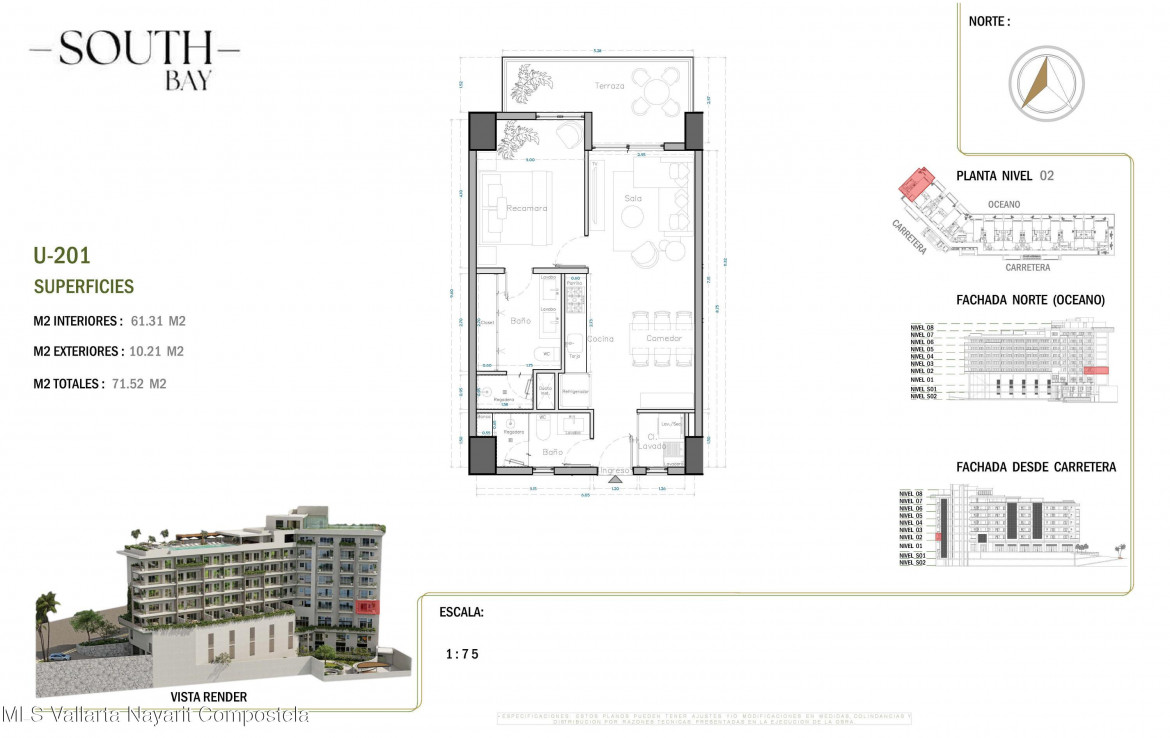 South Bay es un nuevo y exclusivo desarrollo ubicado en el corazon de la Zona Romantica, a pocos pasos de playas, restaurantes, galerias y vida nocturna. El proyecto contara con 65 condominios con vistas y en diversas configuraciones: unidades de 1 recamara, 1 recamara + flex, 1 recamara + den y 2 recamaras, todas con 2 banos completos. Con amenidades de primer nivel que incluyen:*Estacionamiento y bodegas disponibles para la mayoria de las unidades (con costo extra)*Alberca con vistas panoramicas en la azotea con terraza para asolearse*Gimnasio, area para mascotas y cancha de padel unica en la zona*Elevadores, acceso controlado y elegante lobbyUbicado sobre una via principal, South Bay combina accesibilidad, amenidades modernas y estilo de vida, siendo